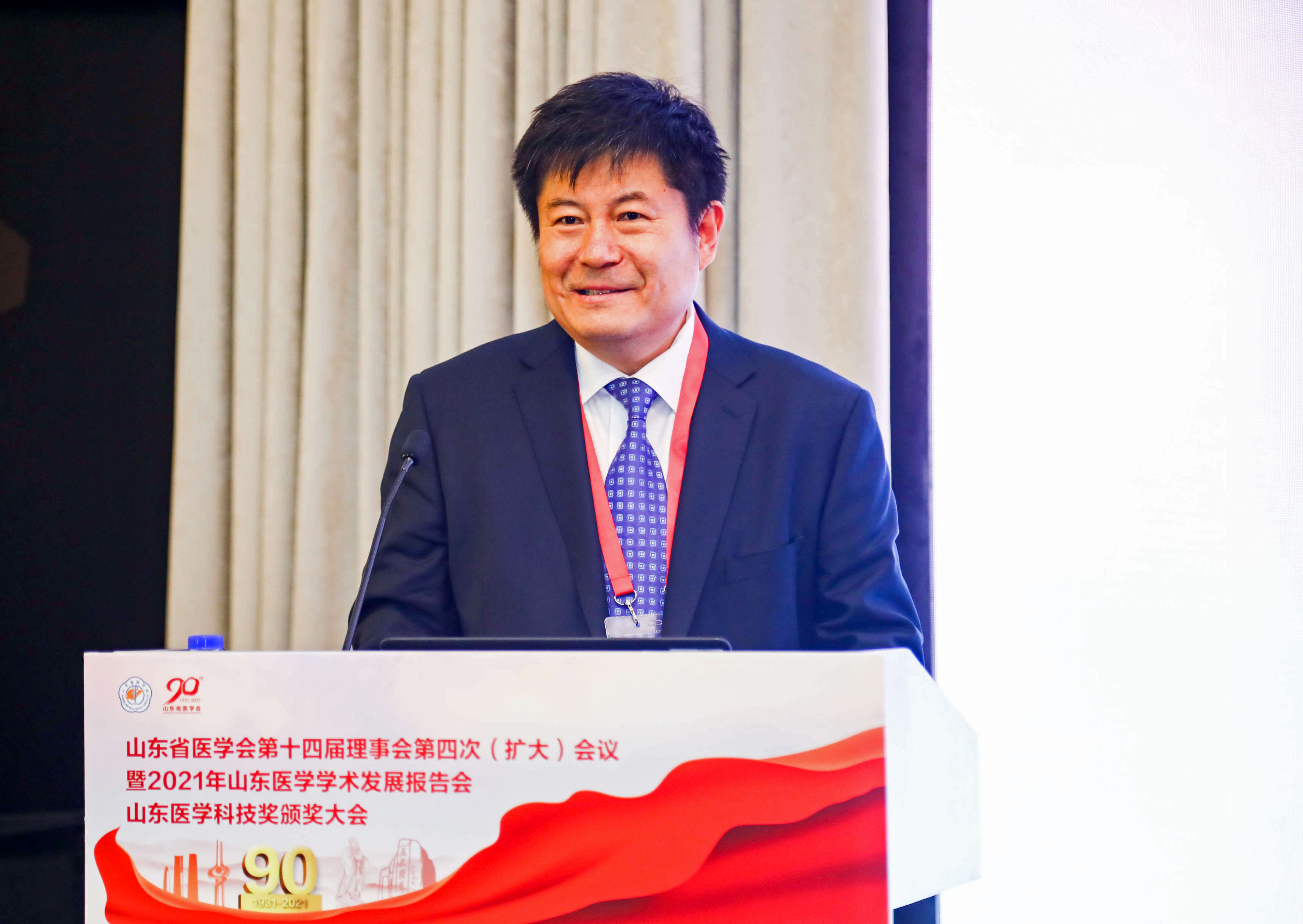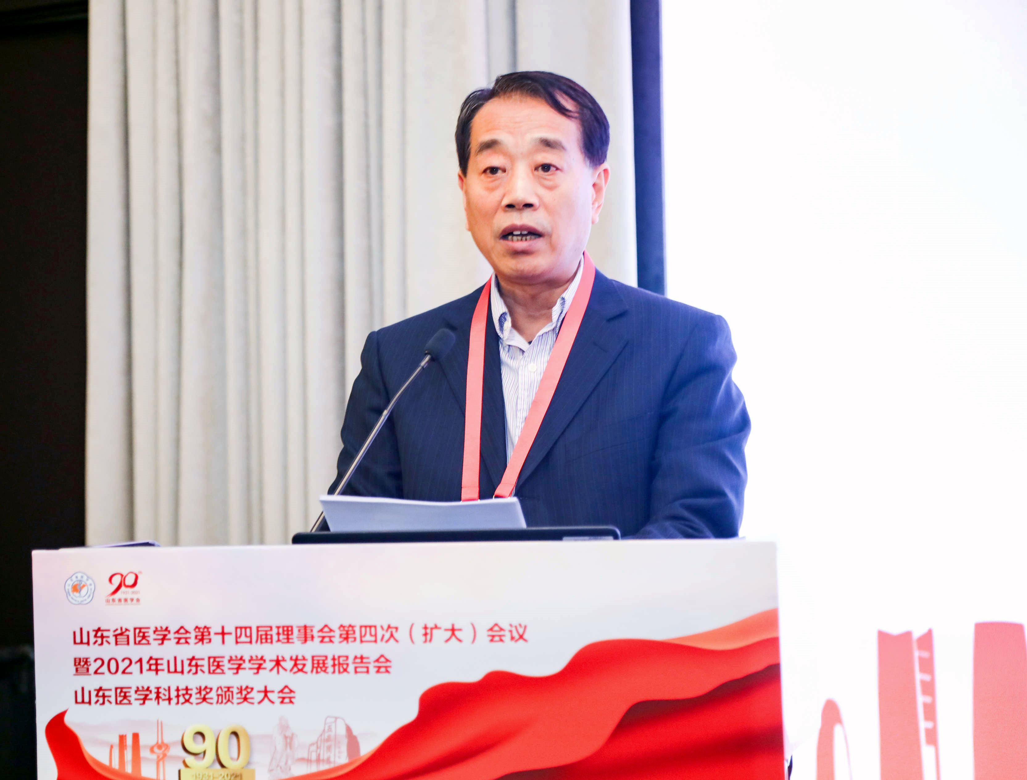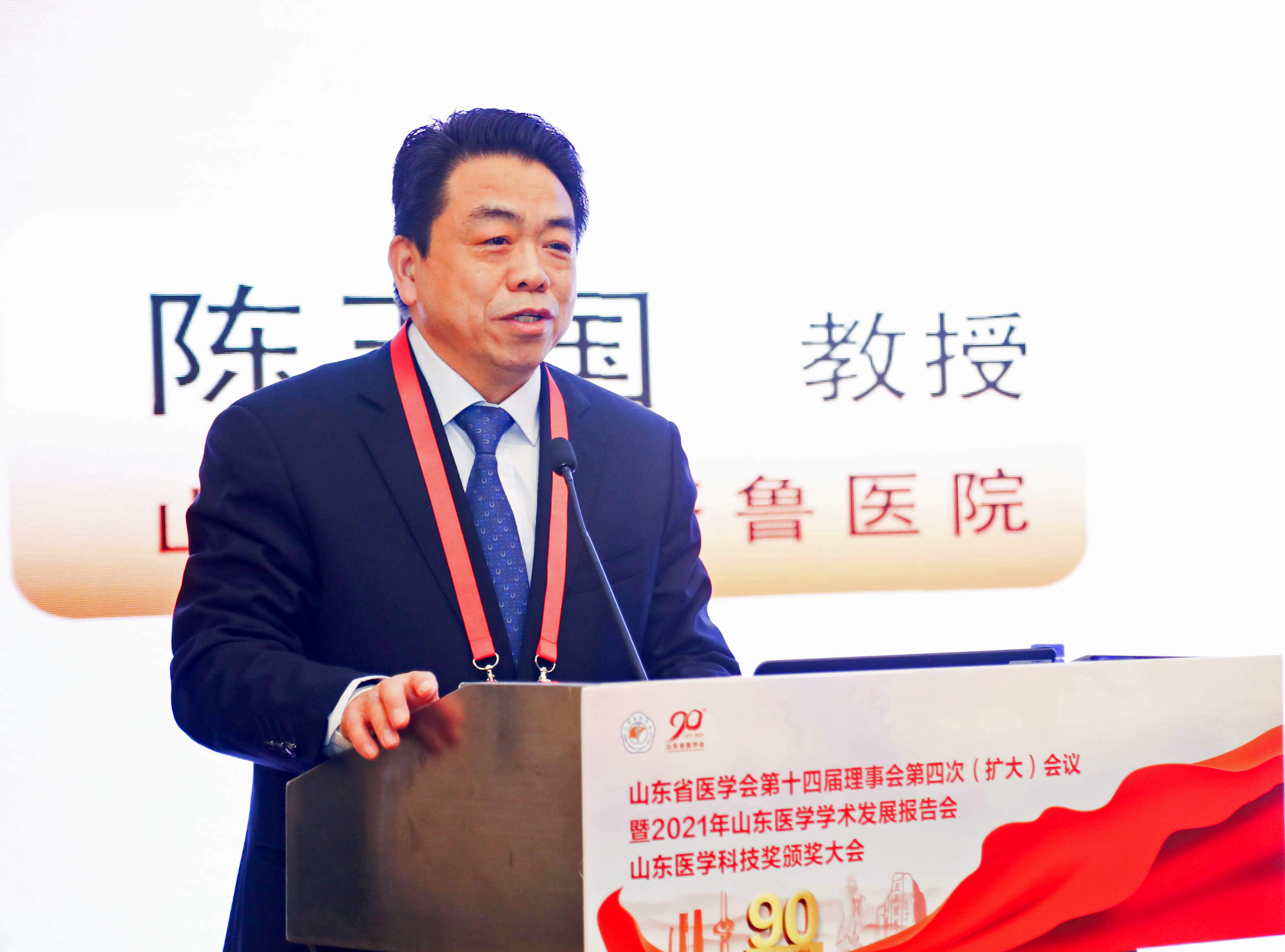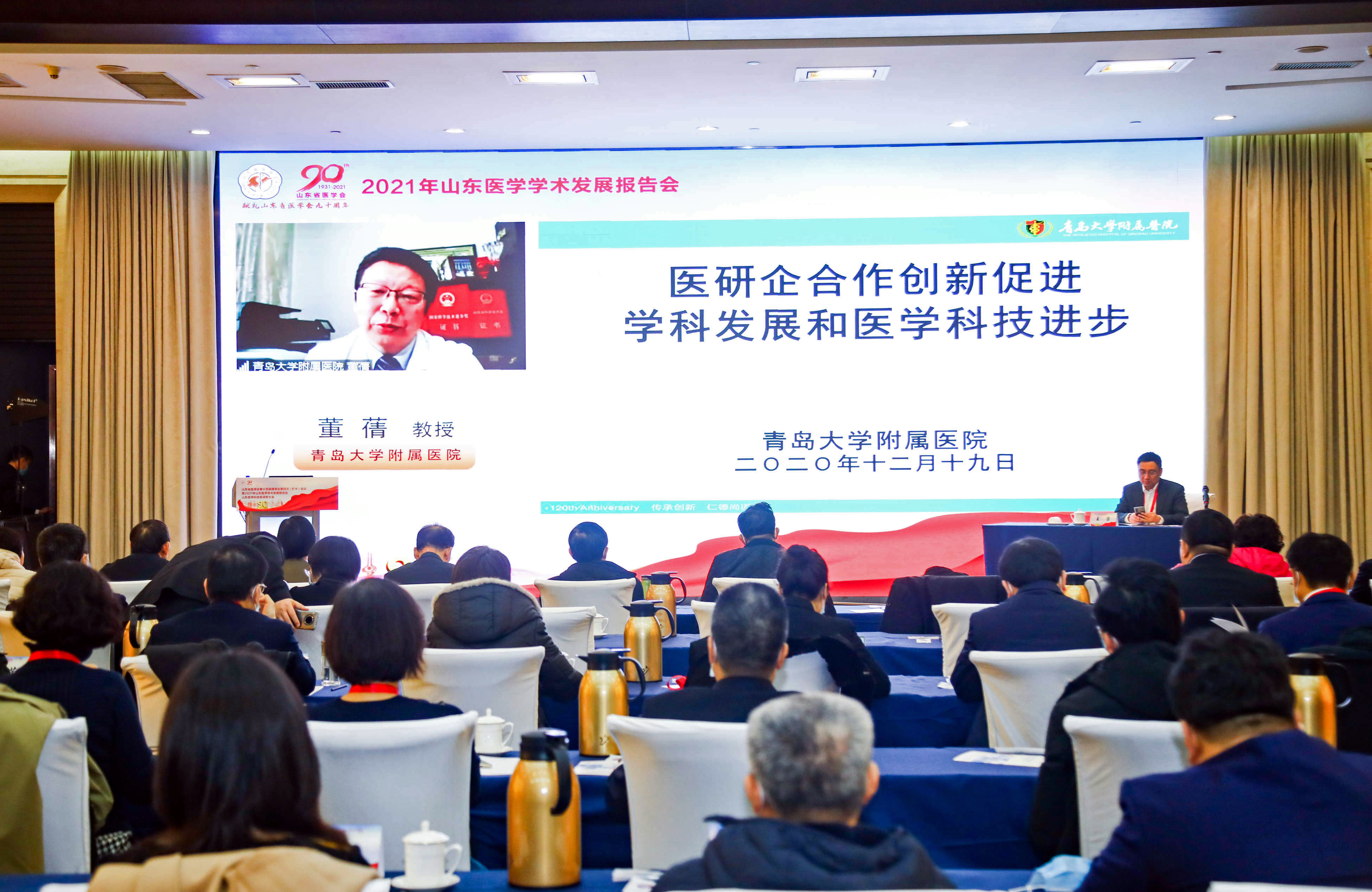 2021年山东医学学术发展报告会,邀请青岛大学附属医院院长董蒨、山东省皮肤病医院院长张福仁、山东大学齐鲁医院院长陈玉国做学术报告。山东医学学术发展报告会每年与省医学会理事会同期举行,邀请学术上有地位、有成就的专家代表作学术报告,交流思想,启迪智慧。