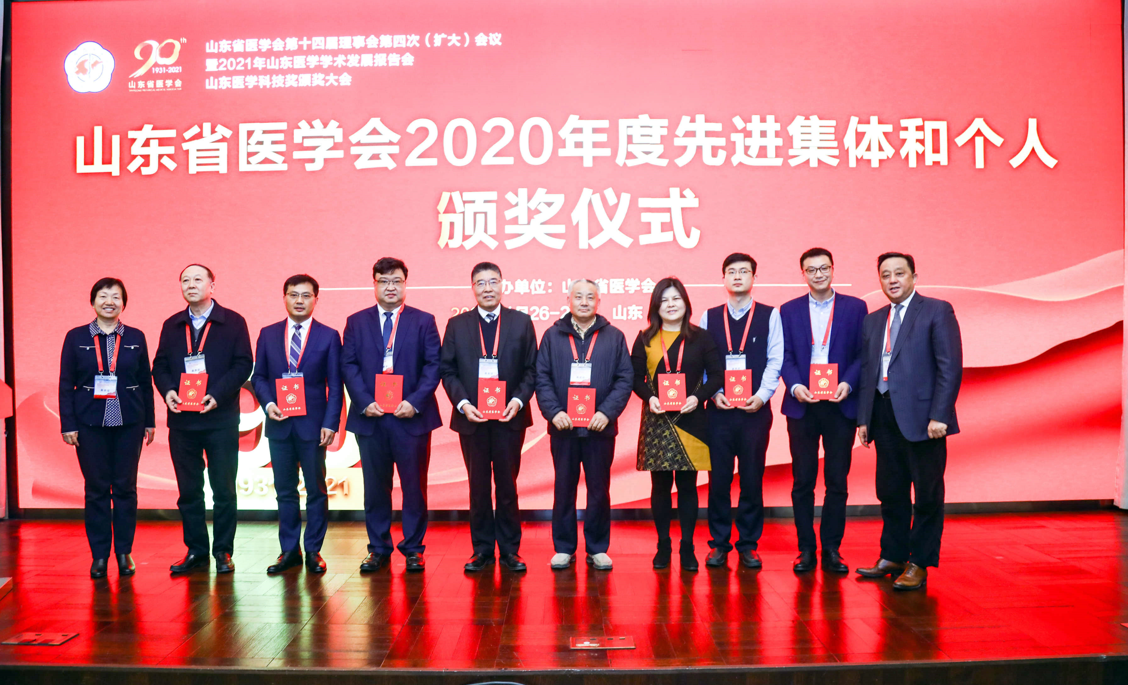 大会对山东省医学会抗击新冠肺炎疫情先进个人,2020年度优秀市医学会、优秀专科分会、优秀多学科联合委员会、学术提升工程示范分会、助力基层工程示范分会、科普示范分会等先进集体,助力产业等先进个人进行了表彰,并隆重举行2020年度山东医学科技奖颁奖大会。