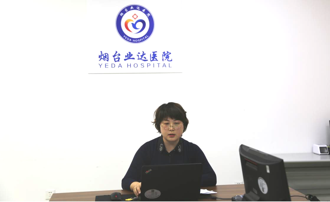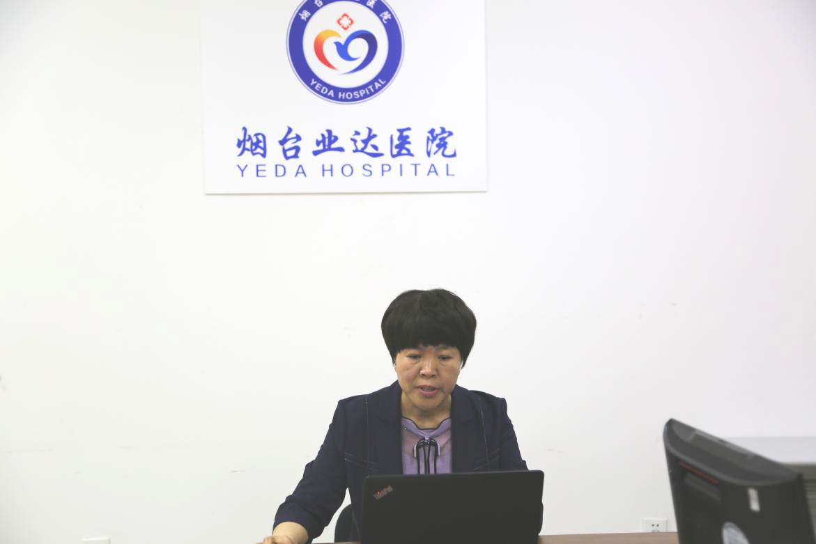 烟台业达医院医务部副主任张镇、财务科科长董涵元、网络管理科科长温海萍、物资采购供应科科长张崇红线上授课。