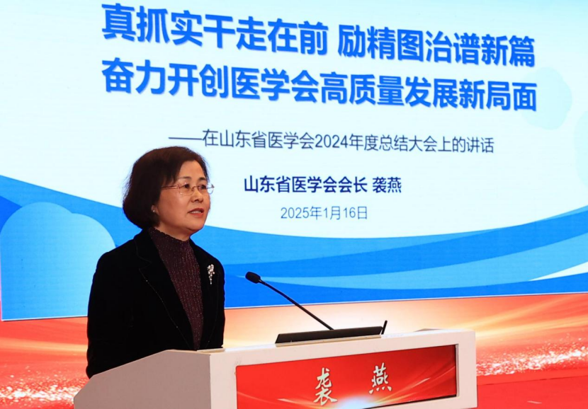 袭燕会长以《真抓实干走在前 励精图治谱新篇 奋力开创医学会高质量发展新局面》为主题作总结讲话,并指出,2024年,山东省医学会在省科协、省民政厅、省卫生健康委和中华医学会的领导和指导下,团结引领广大会员,围绕理事会确定的“一二三四五”总体规划,着力健全机制、完善制度、细化措施,全力推动各项任务落实落地。年度重点工作目标全面完成,多项指标超额完成。