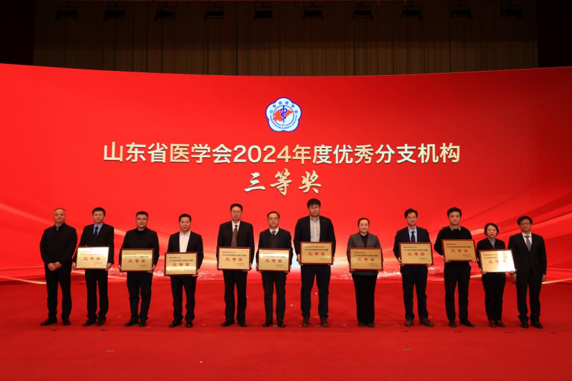 会议表扬了2024年度分支机构优秀党建工作小组和组长、优秀分支机构和先进工作者、优秀会员单位和优秀个人会员、优秀市医学会以及山东医学科技奖获奖项目。同期发布了山东省医学会会歌《矢志不渝》,山东第一医科大学附属省立医院(山东省立医院)白衣天使合唱团代表全体会员正式唱响会歌。