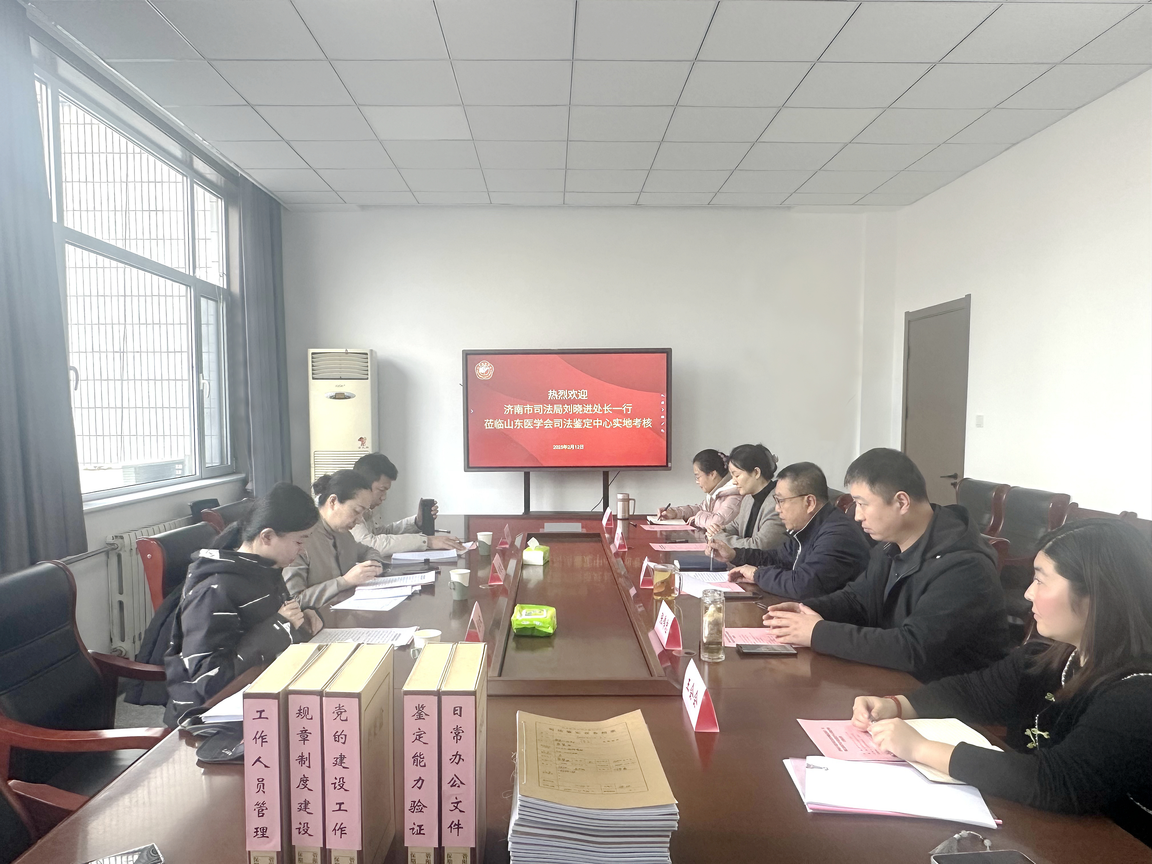 为加强对司法鉴定机构和司法鉴定人的监督管理,促进依法诚信执业,推动济南市司法鉴定行业健康发展,按照市司法局2024年司法鉴定机构实地考核计划安排,2月12日,济南市司法局总经济师、公共法律服务管理处刘晓进处长一行3人到山东医学会司法鉴定中心现场考核。省医学会副会长王爱杰,省医学会副秘书长、山东医学会司法鉴定中心法定代表人张伟忠,省医学会医学鉴定中心主任丁嘉霖及中心司法鉴定人陪同考核。