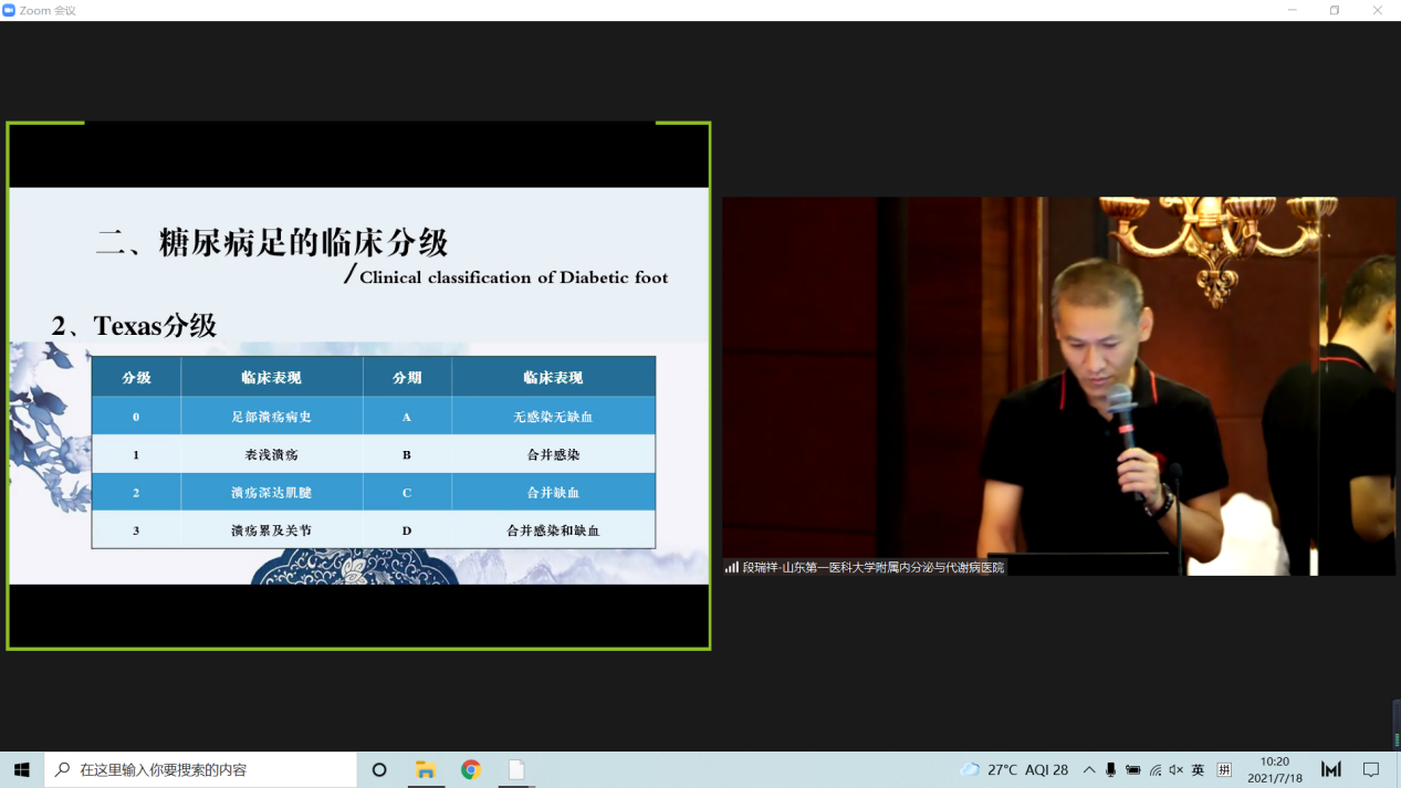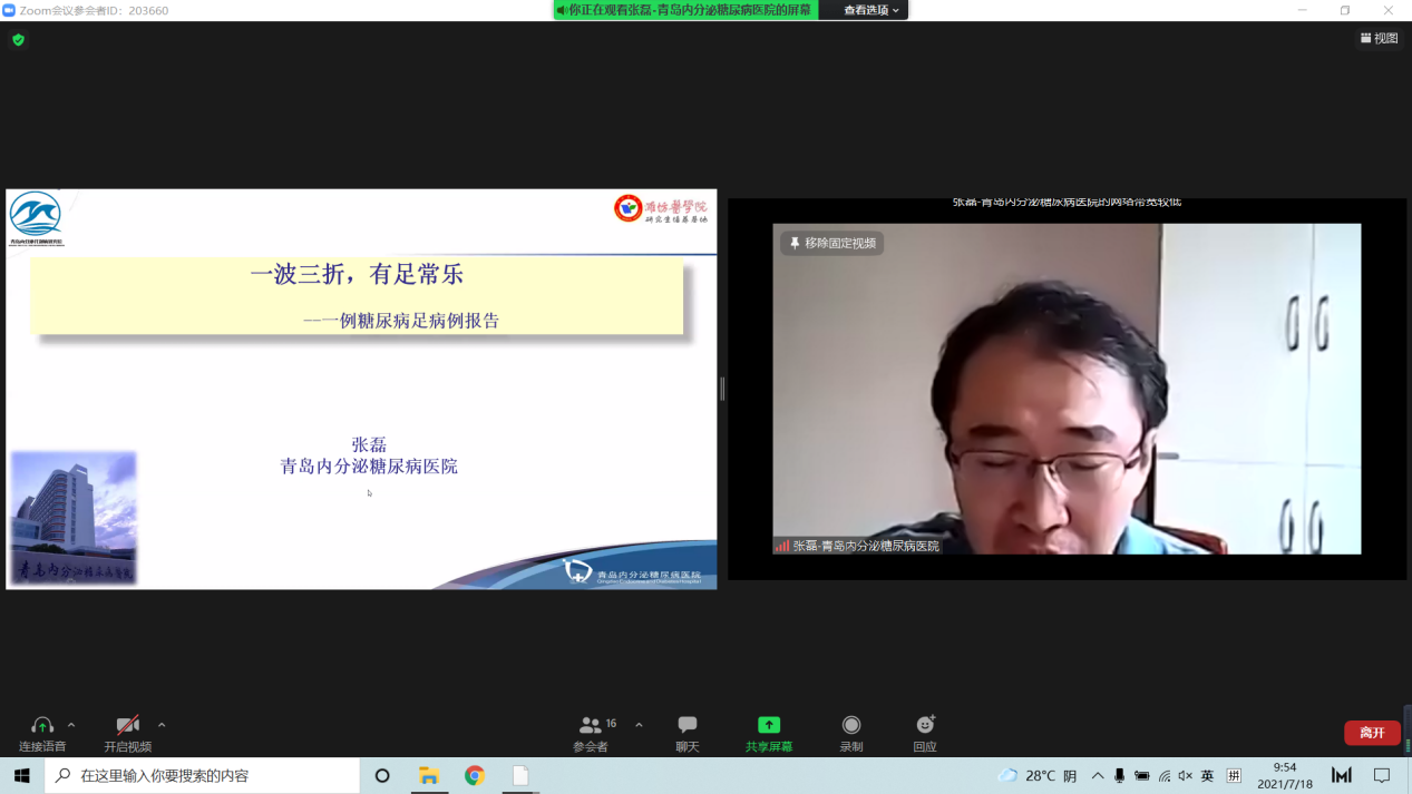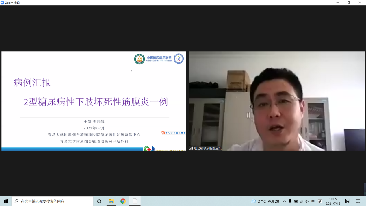 为进一步提高糖尿病足病诊疗水平,2021年山东省医学会糖尿病足与慢性创面多学科联合委员会病例点评会于7月18日上午在线举办。中华医学会内分泌学分会委员兼秘书长、山东第一医科大学附属省立医院内分泌科主任管庆波致辞,山东省医学会糖尿病足与慢性创面多学科联合委员会主任委员李秋主持会议。