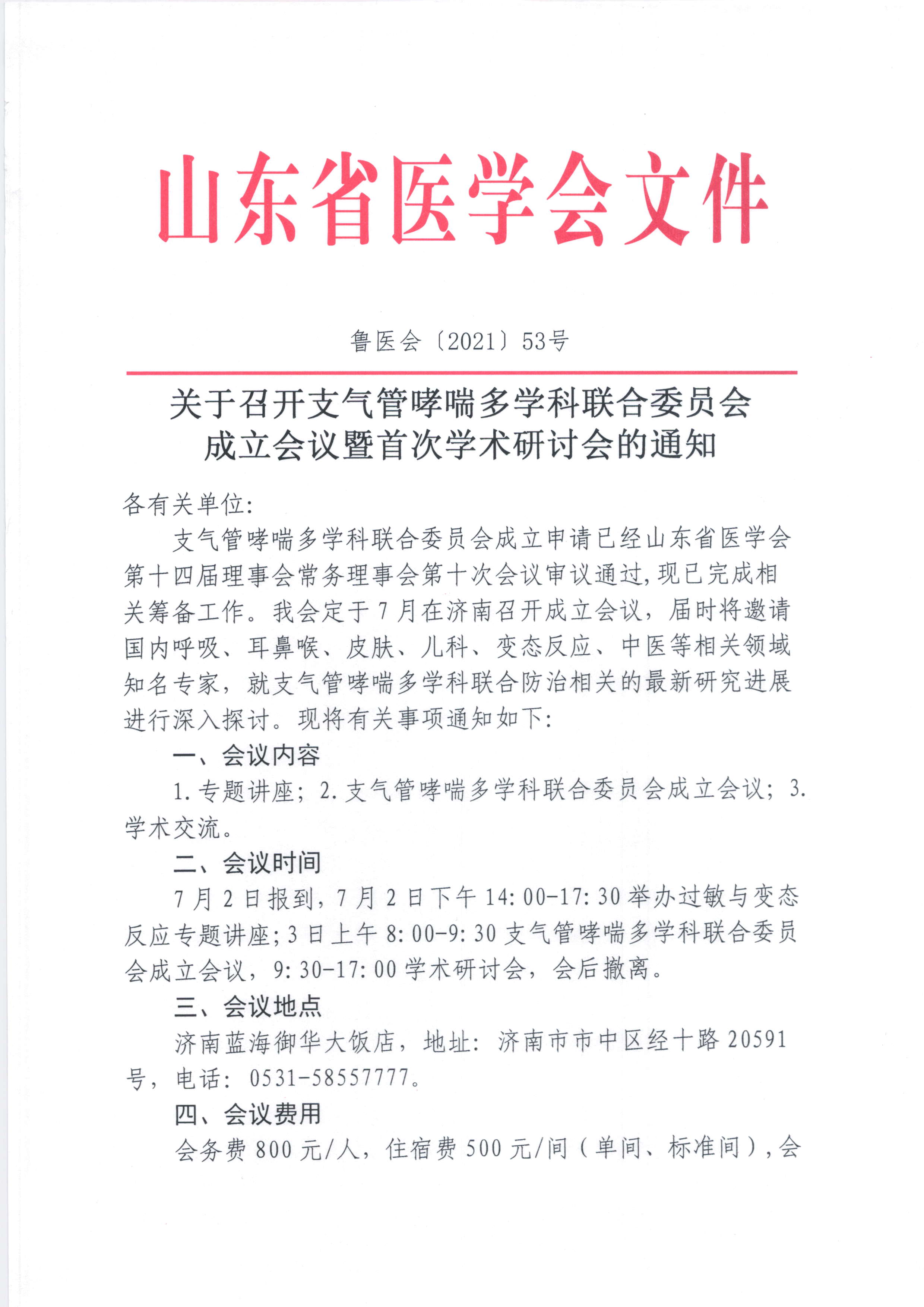 关于召开支气管哮喘多学科联合委员会成立会议暨首次学术研讨会的通知