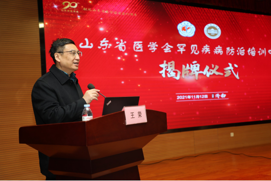 赵家军表示,山东第一医科大学附属省立医院(山东省立医院)以“公益担当”为己任,依托医疗、教学、科研融合优势,借助在医务社会工作方面的有益探索和广泛的远程医学网络,在罕见病诊治方面开展了大量工作并取得了显著成效。省医学会罕见疾病防治培训中心在省立医院揭牌,赋予了医院新的职责和使命。今后医院将深入总结罕见疾病防治理论和诊疗规律,积极开展罕见疾病早期精准诊疗,完善相关诊疗服务体系,早日把中心建设成为引领科技创新、促进成果转化、培养领军人才的重要阵地,让罕见病患者成为中心建设的最大受益者。
