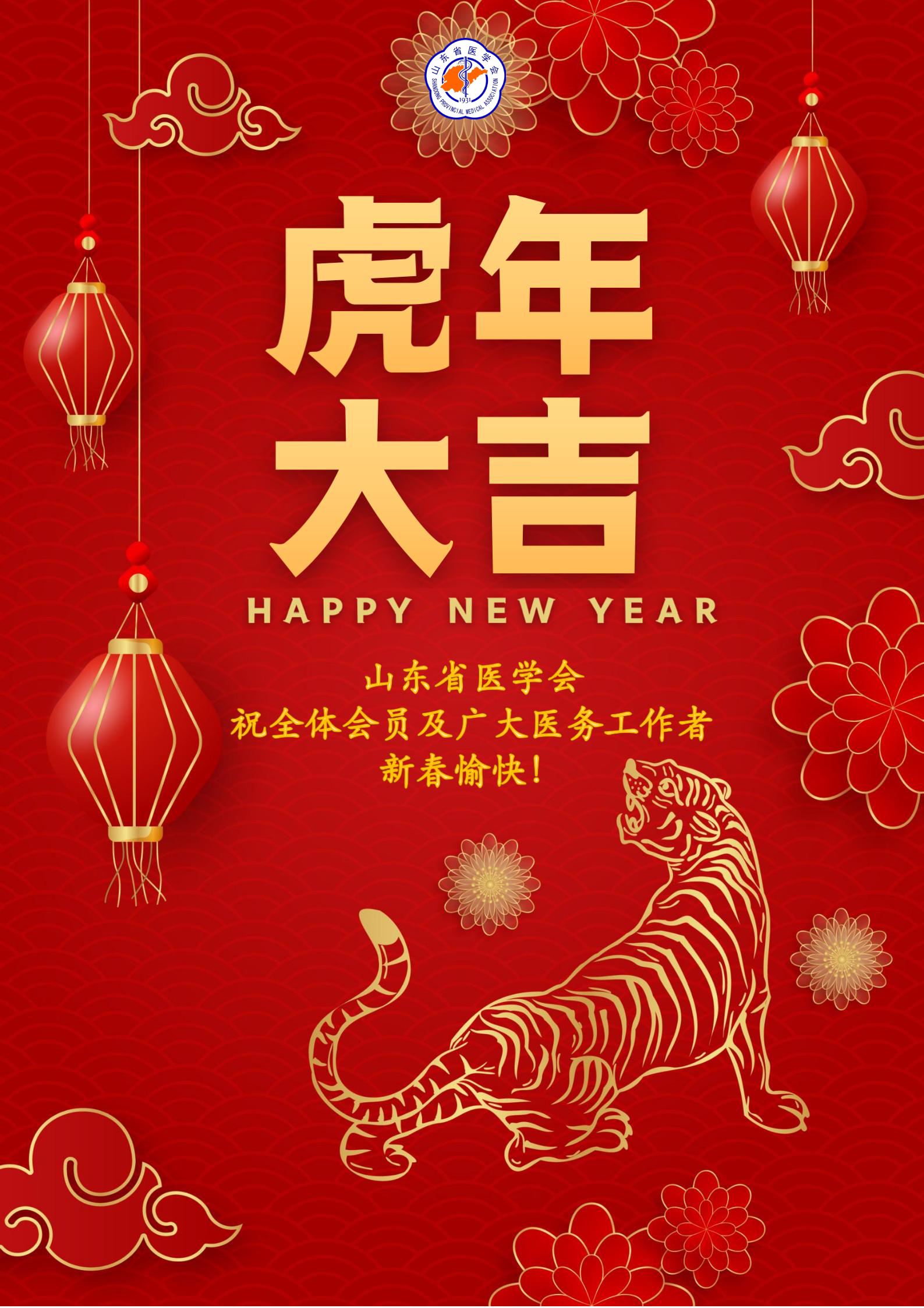 金牛辞旧岁,瑞虎报春来。值此壬寅虎年春节到来之际,山东省医学会向全体会员、全省广大医务工作者以及关心和支持学会工作的各界朋友,致以新春的祝福和诚挚的问候,向春节期间依然坚守医疗一线,特别是奋战在新冠肺炎疫情防控一线的广大医务工作者致以最崇高的敬意和亲切的慰问!