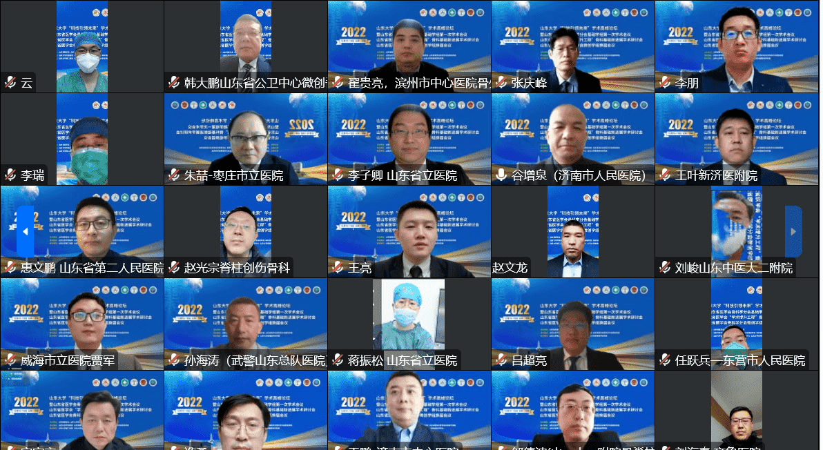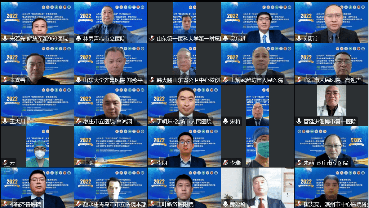 2022年12月16日至18日,由山东省医学会、山东省医学会骨科学分会基础学组、微创学组主办的山东省医学会“学术提升工程”骨科基础新进展学术研讨会、骨科学分会基础学组第一次学术会议、骨科学分会微创学组第八次学术会议以线上方式召开。本次会议以“推进新时代医学高质量发展”为主题,聚焦创新、聚焦融合,邀请到15位院士和60余位国内外知名专家学者共襄盛会,为大家了解医学前沿新进展、新动态,分享医学发展新技术、新成果,探讨医学交叉融合新思路、新范式提供机会,搭建平台。