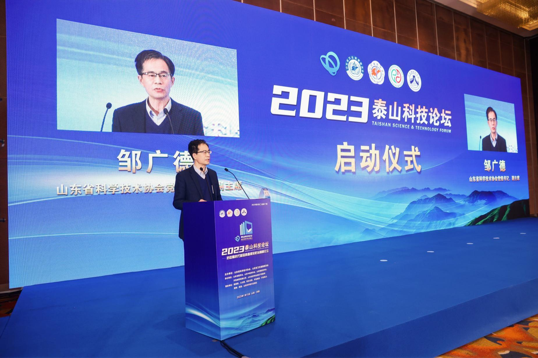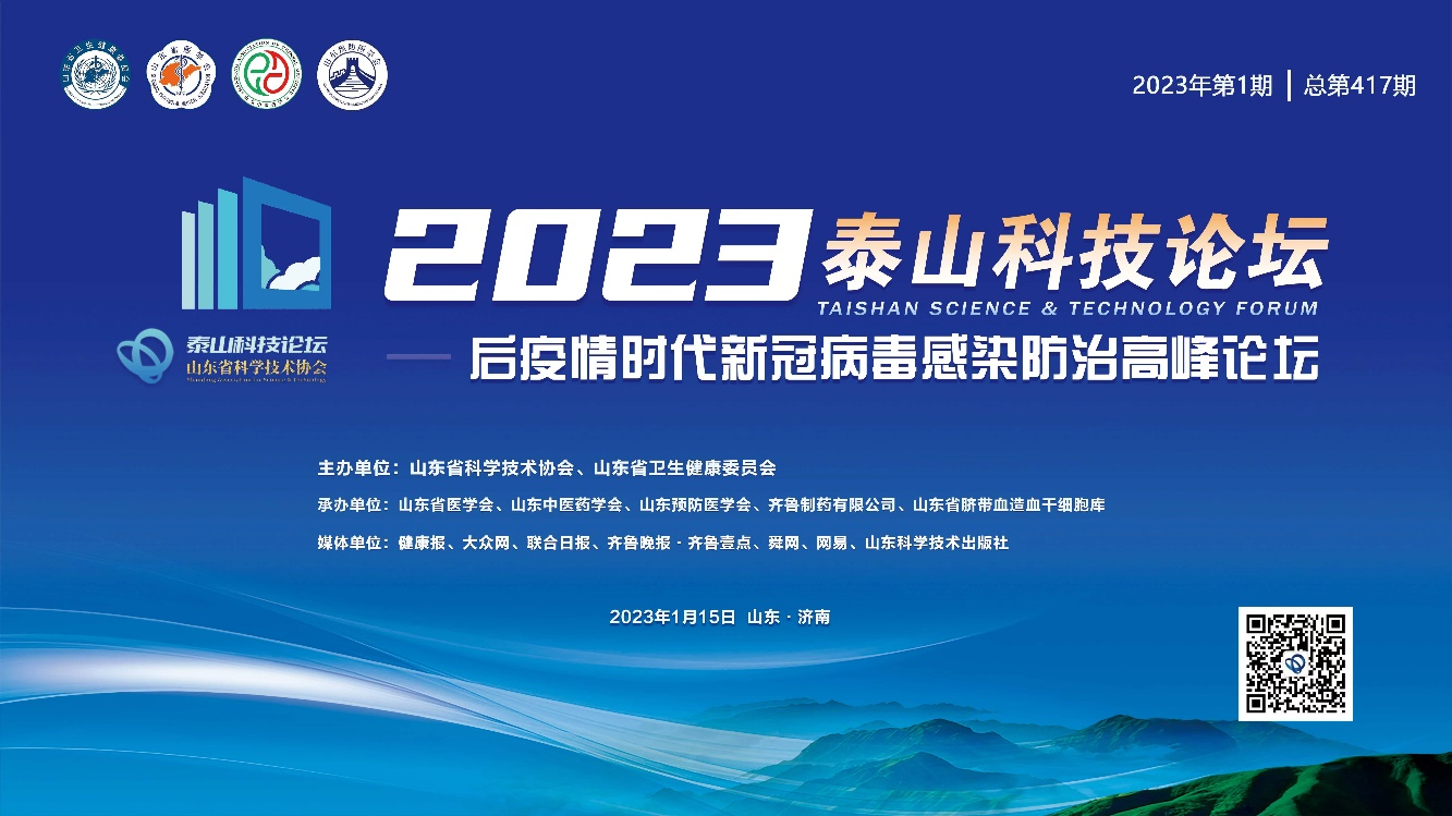 1月15日,由山东省科学技术协会、山东省卫生健康委员会主办,山东省医学会、山东中医药学会、山东预防医学会、齐鲁制药有限公司、山东省脐带血造血干细胞库共同承办的第417期泰山科技论坛——后疫情时代新冠病毒感染防治高峰论坛在济南以线上线下相结合方式成功举办。论坛同期举办了2023泰山科技论坛启动仪式。