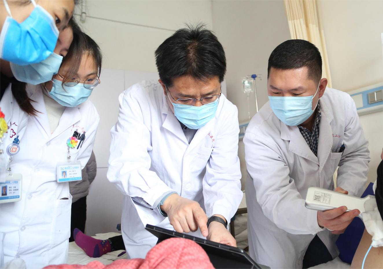 分会专家首先来到曹县第二人民医院,与副院长王付春、医务科主任杜世国、外科副主任赵登海等进行座谈。综合介入医学分会主任委员李玉亮重点介绍了分会的基本情况、诊治病种范围和技术开展情况。王付春副院长表示希望医院在推进分级诊疗体系建设、推动区域化医联体协作方面,与分会深化合作。分会专家还深入外科及内科病房,开展查房及床边超声检查活动,为当地医护人员和住院患者排忧解难。