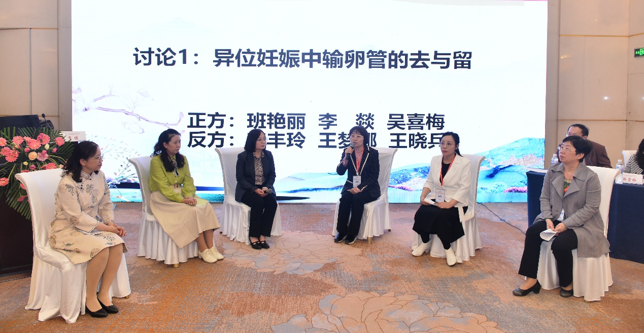 在“异位妊娠中输卵管的去与留”专题讨论环节,山东大学齐鲁医院班艳丽、山东省立第三医院李燚、山东省妇幼保健院吴喜梅作为正方辩手,滨州医学院烟台附属医院李丰玲、聊城市第三人民医院王梦娜、聊城市人民医院王晓兵作为反方辩手对异位妊娠中输卵管应该切除还是保留的问题进行了辩论。
