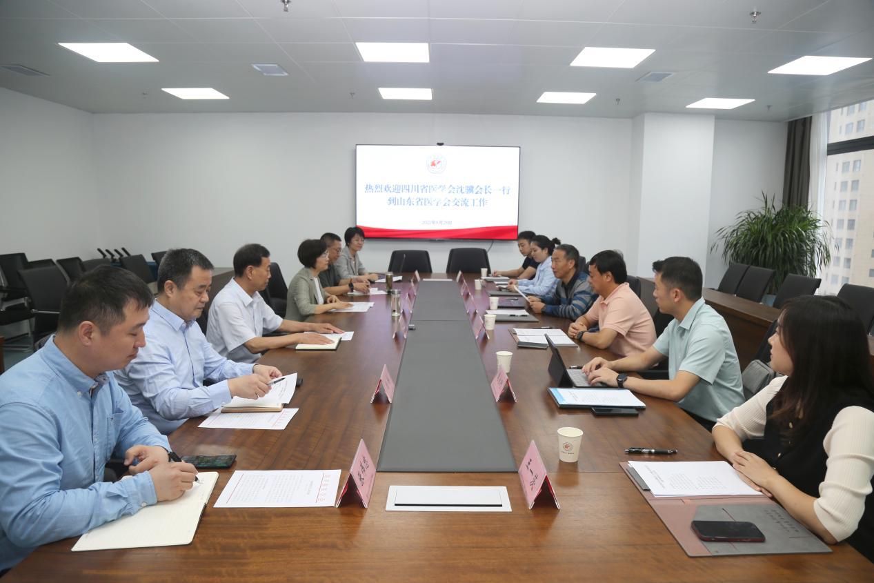 8月28日,四川省医学会会长沈骥、副秘书长张明华、党政办公室主任周永刚、政府事务部部长张璐、学术活动部副部长王一茨、党政办公室干事魏富强一行到山东省医学会考察交流工作,山东省医学会会长袭燕、驻会副会长张林、副会长王爱杰、秘书长岳冬丽、副秘书长饶林和张伟忠参加座谈。