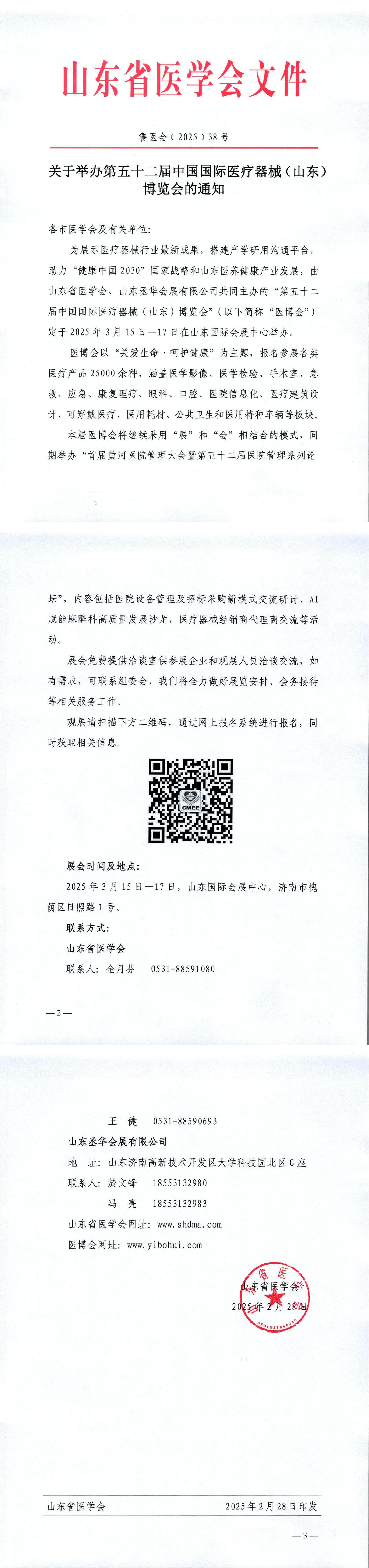 关于举办第五十二届中国国际医疗器械(山东)博览会的通知