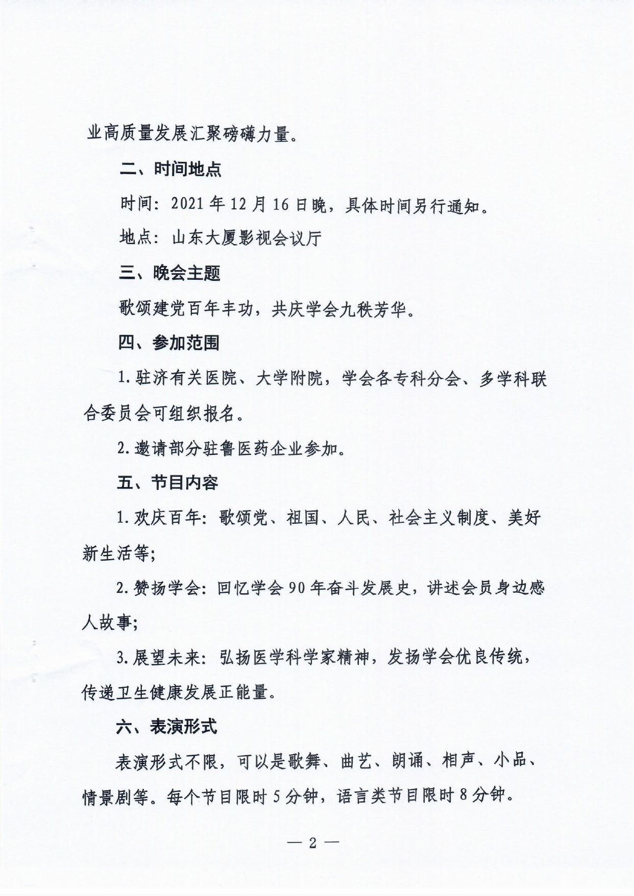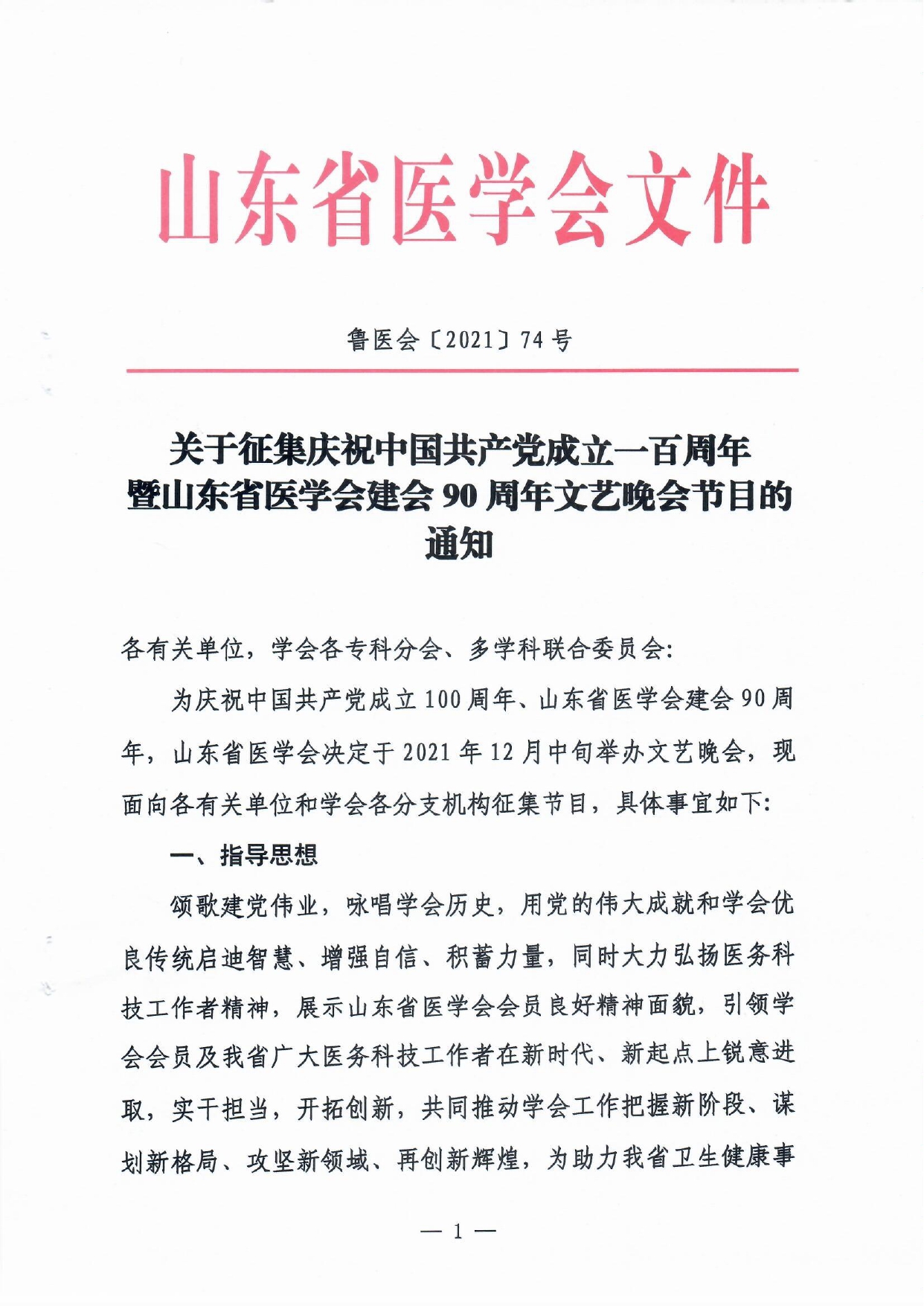 关于征集庆祝中国共产党成立一百周年暨山东省医学会建会90周年文艺晚会节目的通知