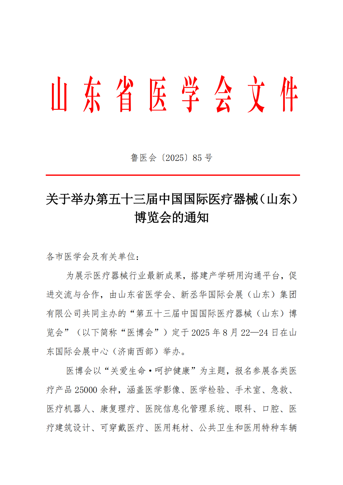 关于举办第五十三届中国国际医疗器械(山东)博览会的通知