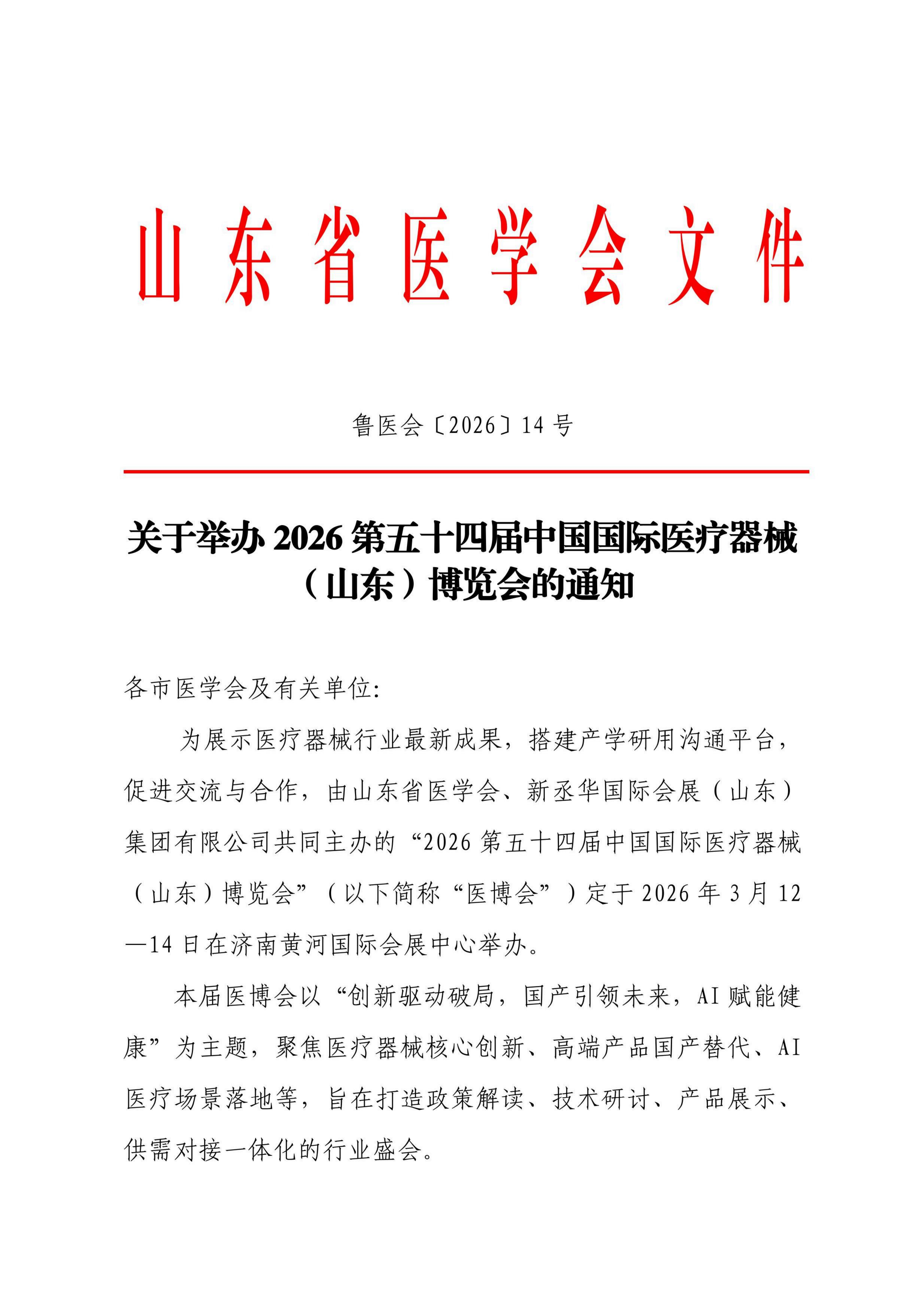 关于举办2026第五十四届中国国际医疗器械(山东)博览会的通知