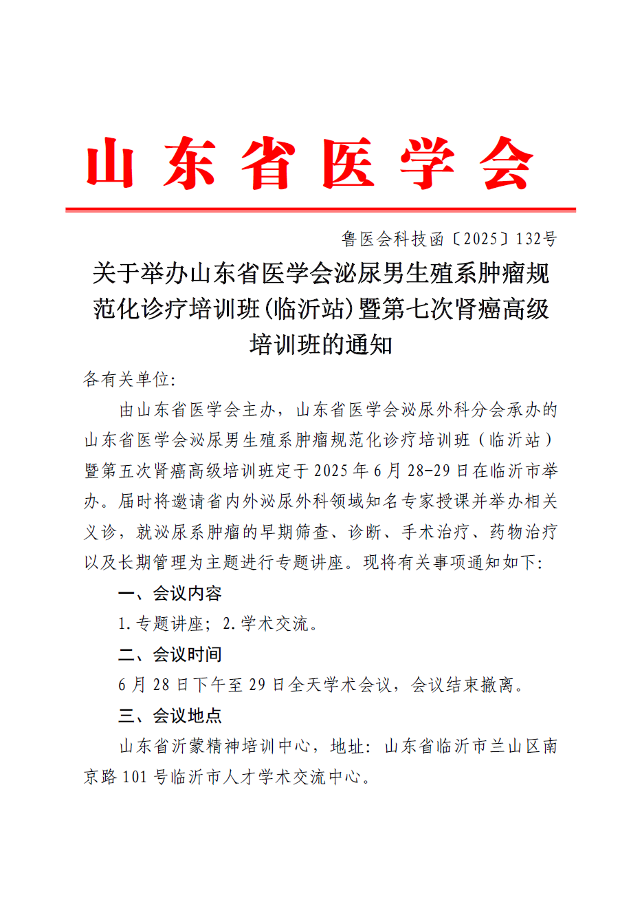 关于举办山东省医学会泌尿男生殖系统肿瘤规范化诊疗培训班(临沂站)暨第七次肾癌高级培训班的通知