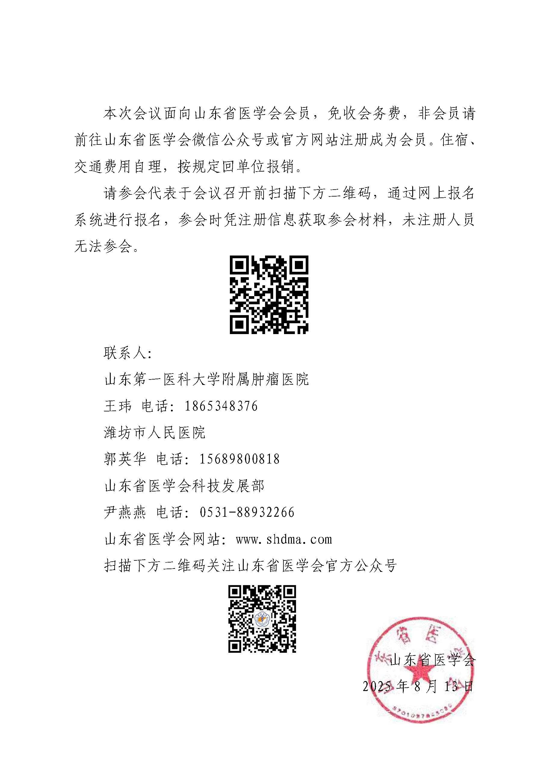 关于举办山东省医学会肿瘤放射治疗学分会乳腺学组规范化诊疗培训班(潍坊站)的通知