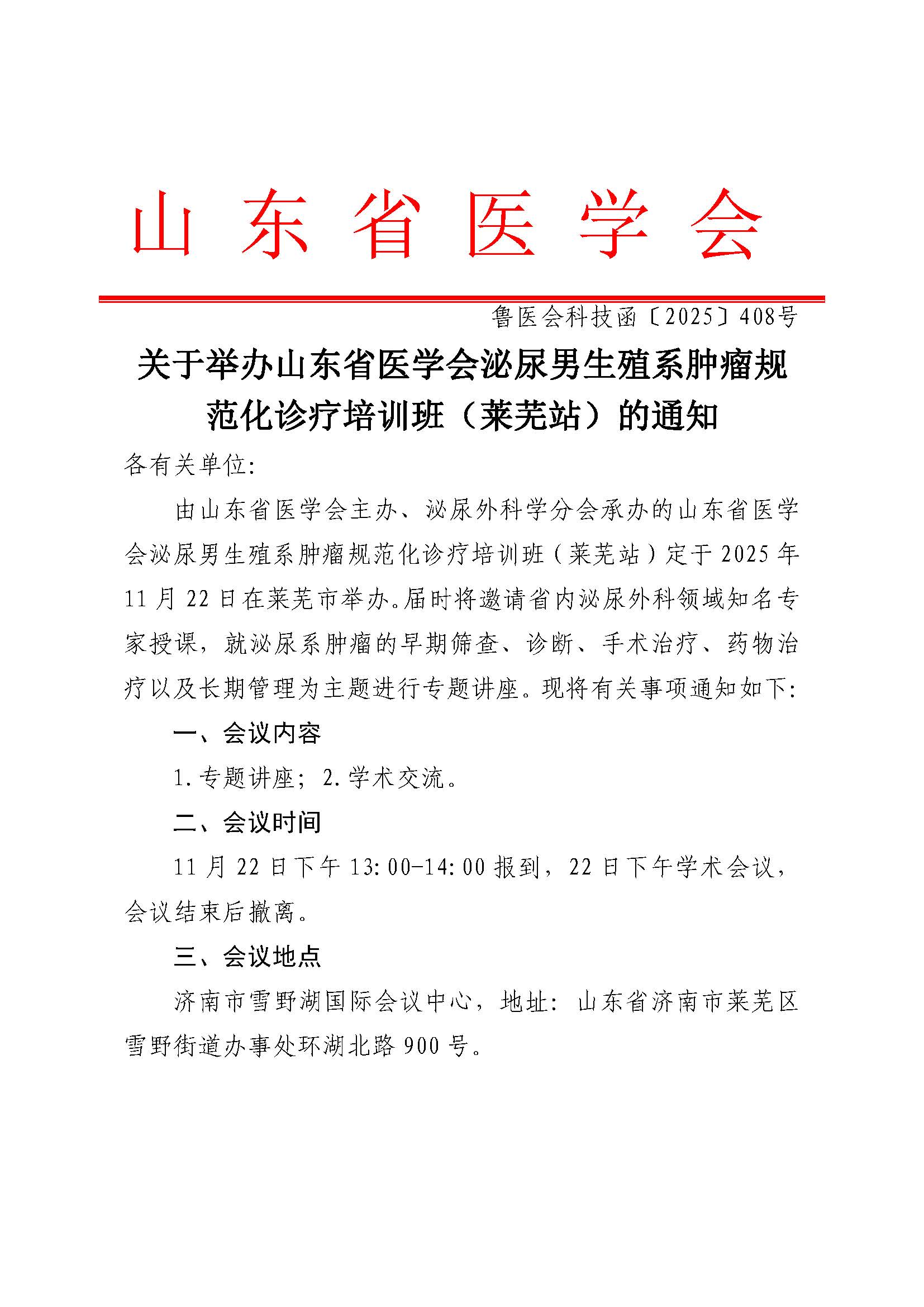 关于举办山东省医学会泌尿男生殖系肿瘤规范化诊疗培训班(莱芜站)的通知