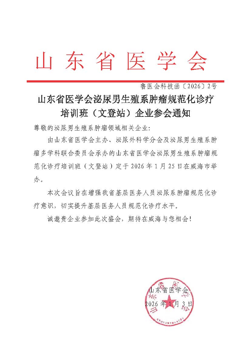 山东省医学会泌尿男生殖系肿瘤规范化诊疗培训班(文登站)企业参会通知