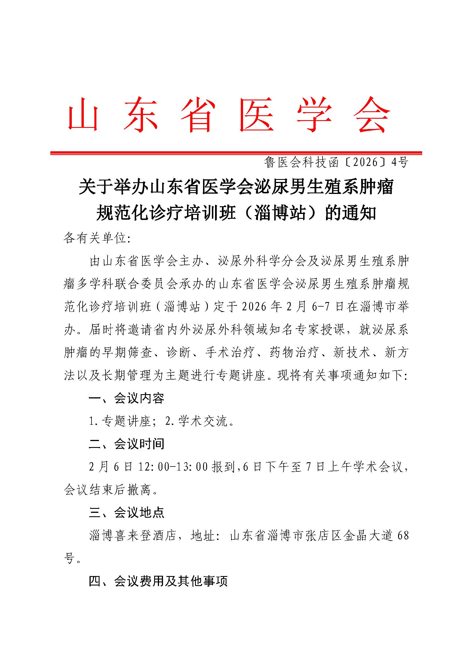 关于举办山东省医学会泌尿男生殖系肿瘤规范化诊疗培训班(淄博站)的通知