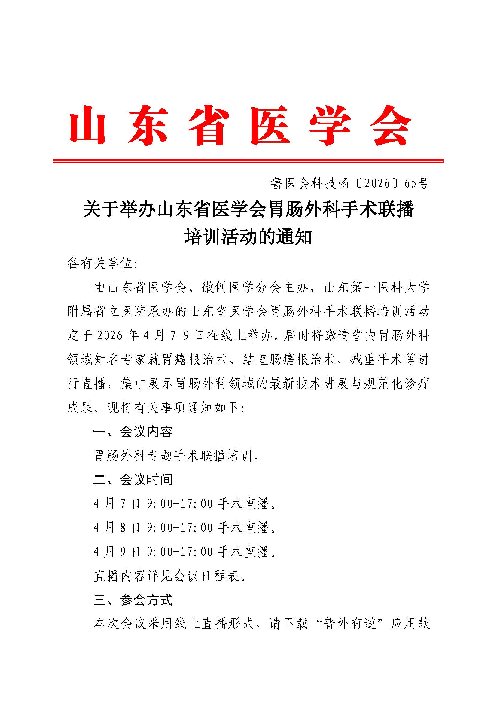 关于举办山东省医学会胃肠外科手术联播活动的通知