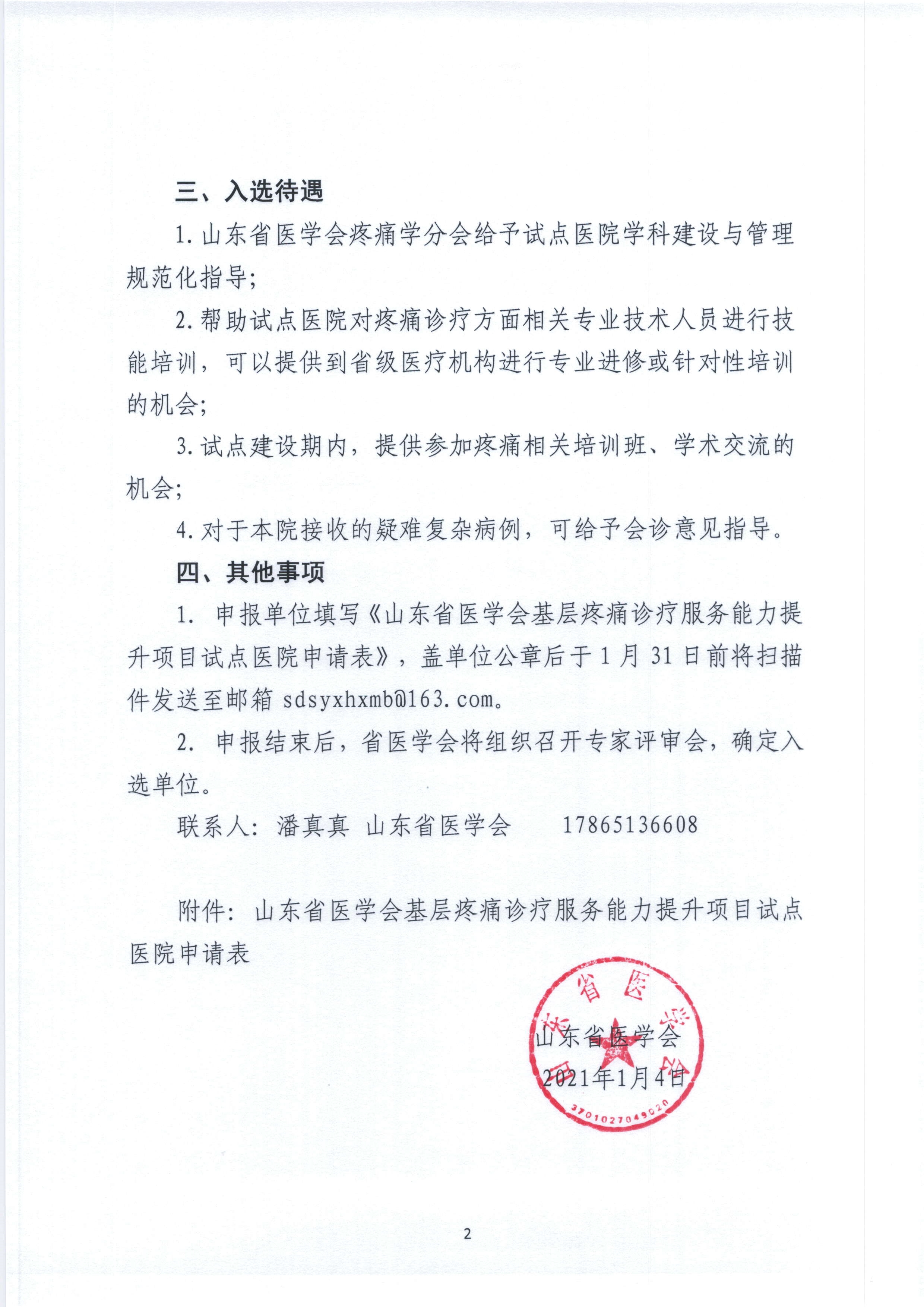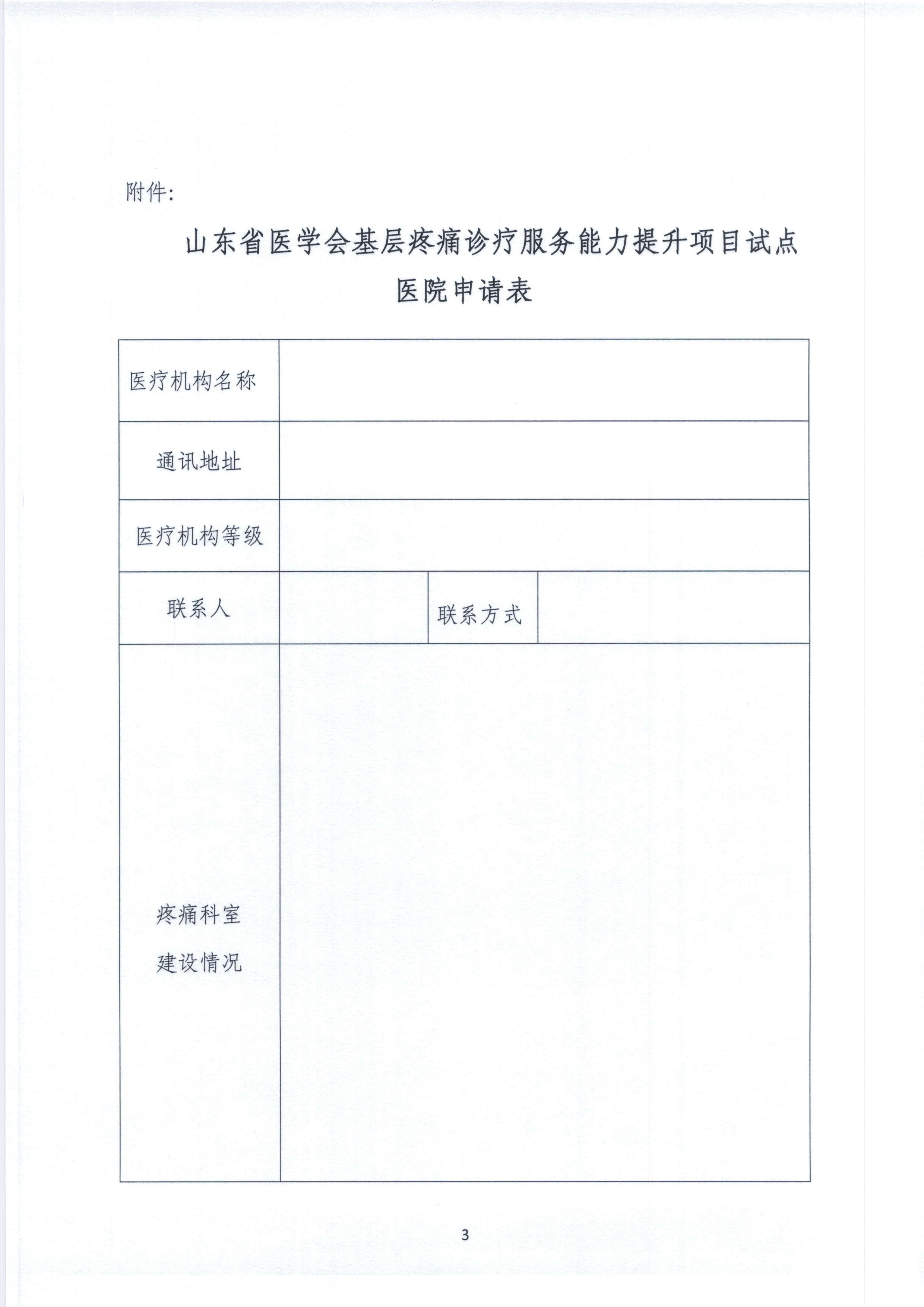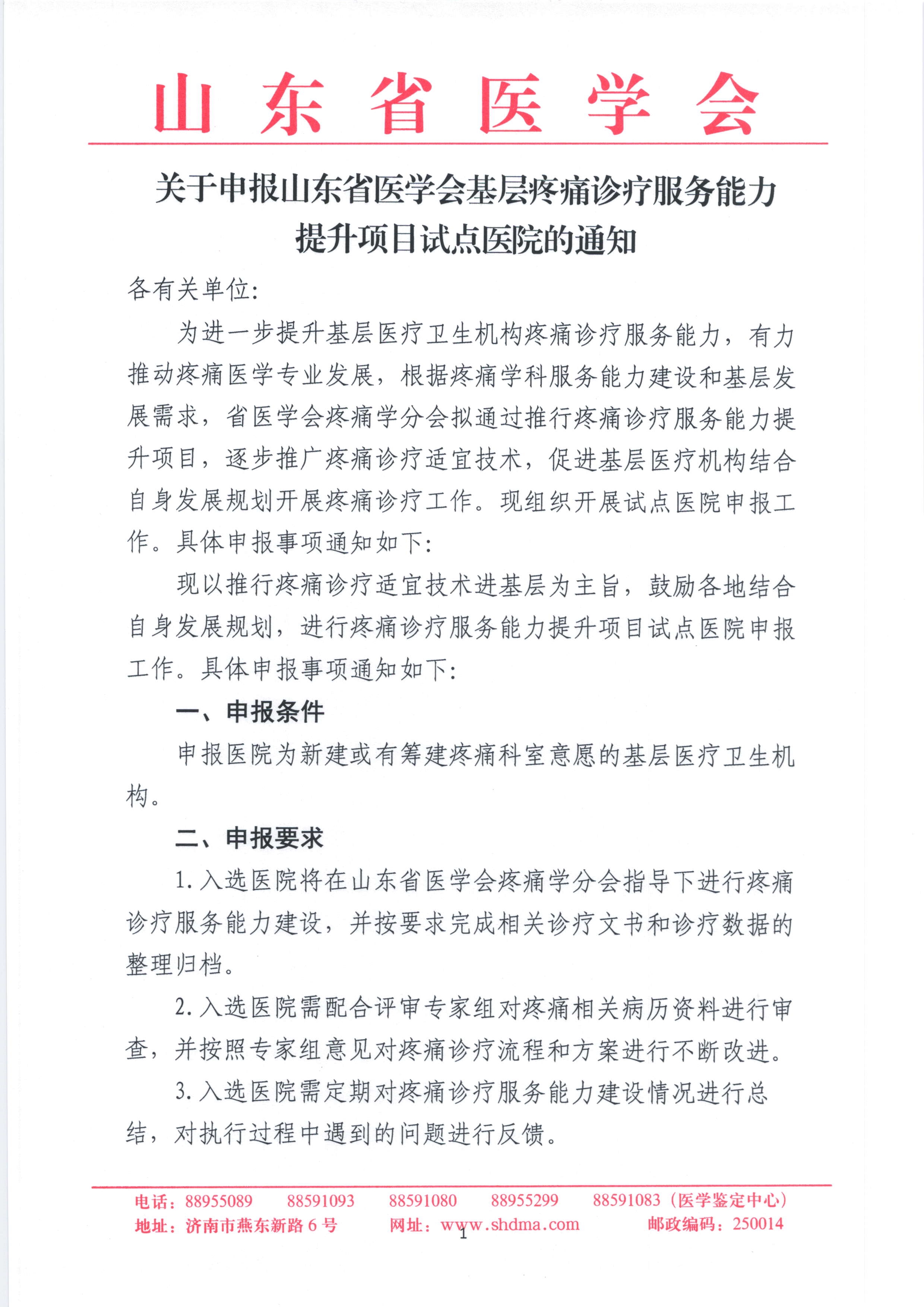 关于申报山东省医学会基层疼痛诊疗服务能力提升项目试点医院的通知