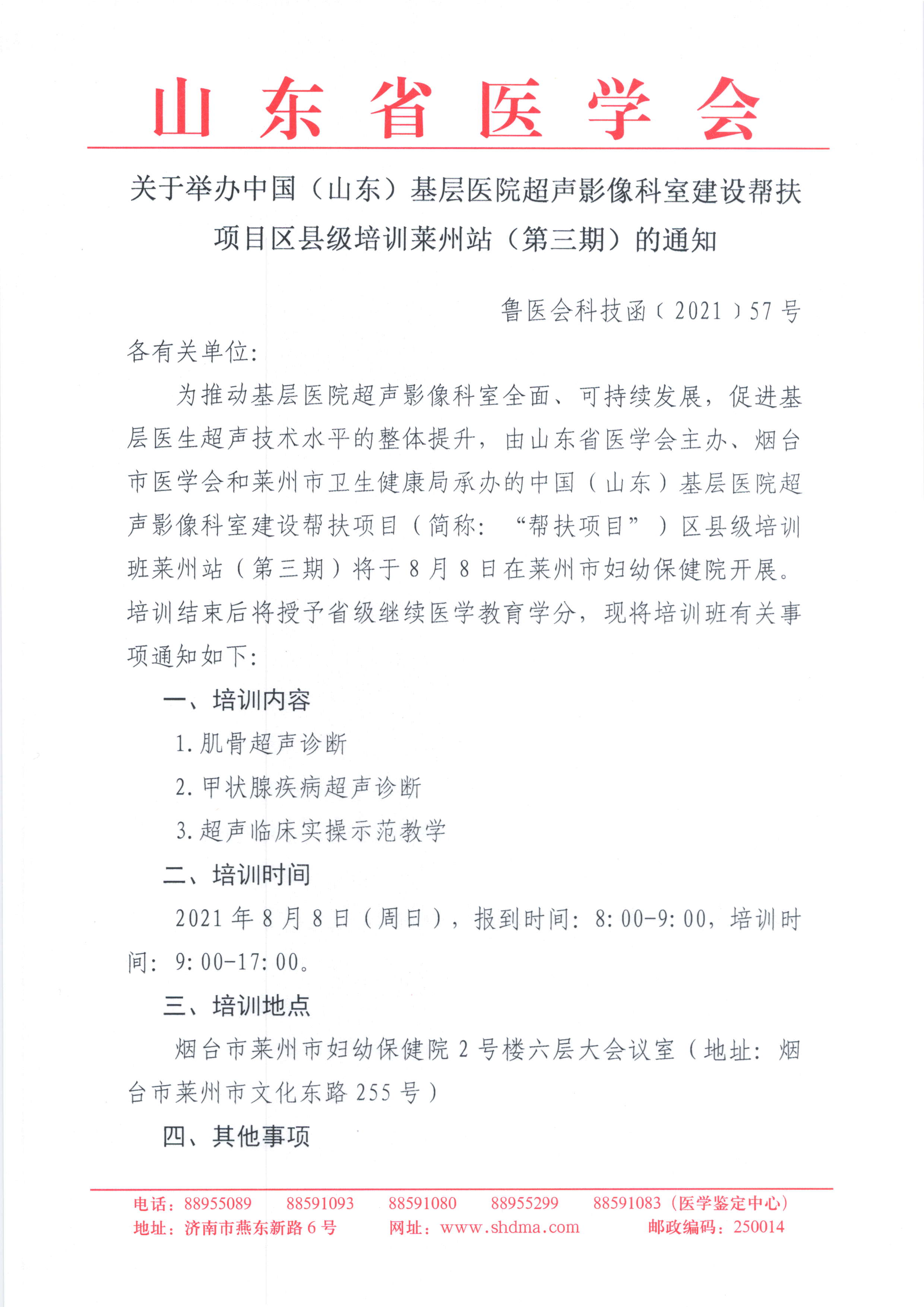 关于举办中国(山东)基层医院超声影像科室建设帮扶项目区县级培训莱州站(第三期)的通知