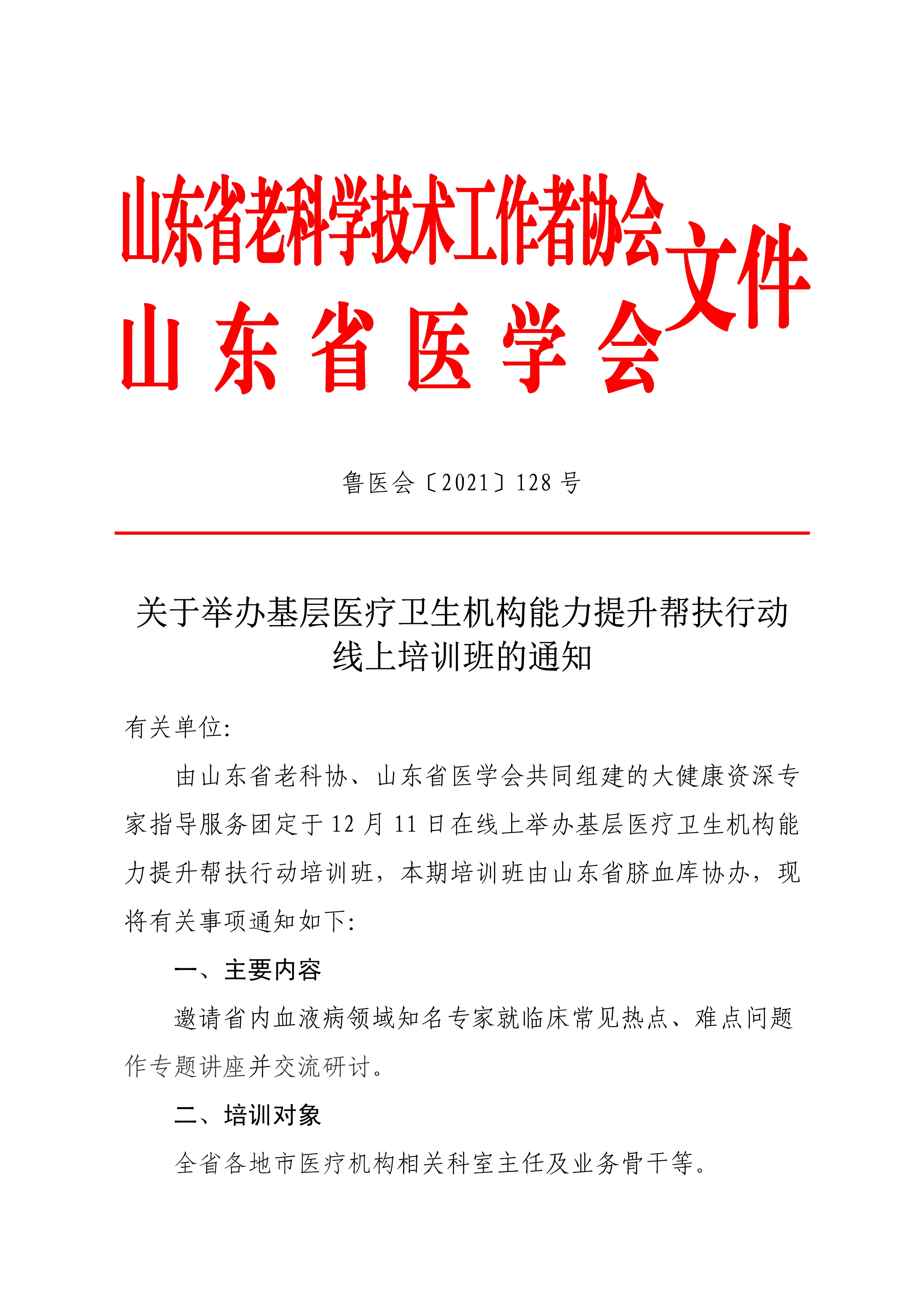 关于举办基层医疗卫生机构能力提升帮扶行动线上培训班的通知