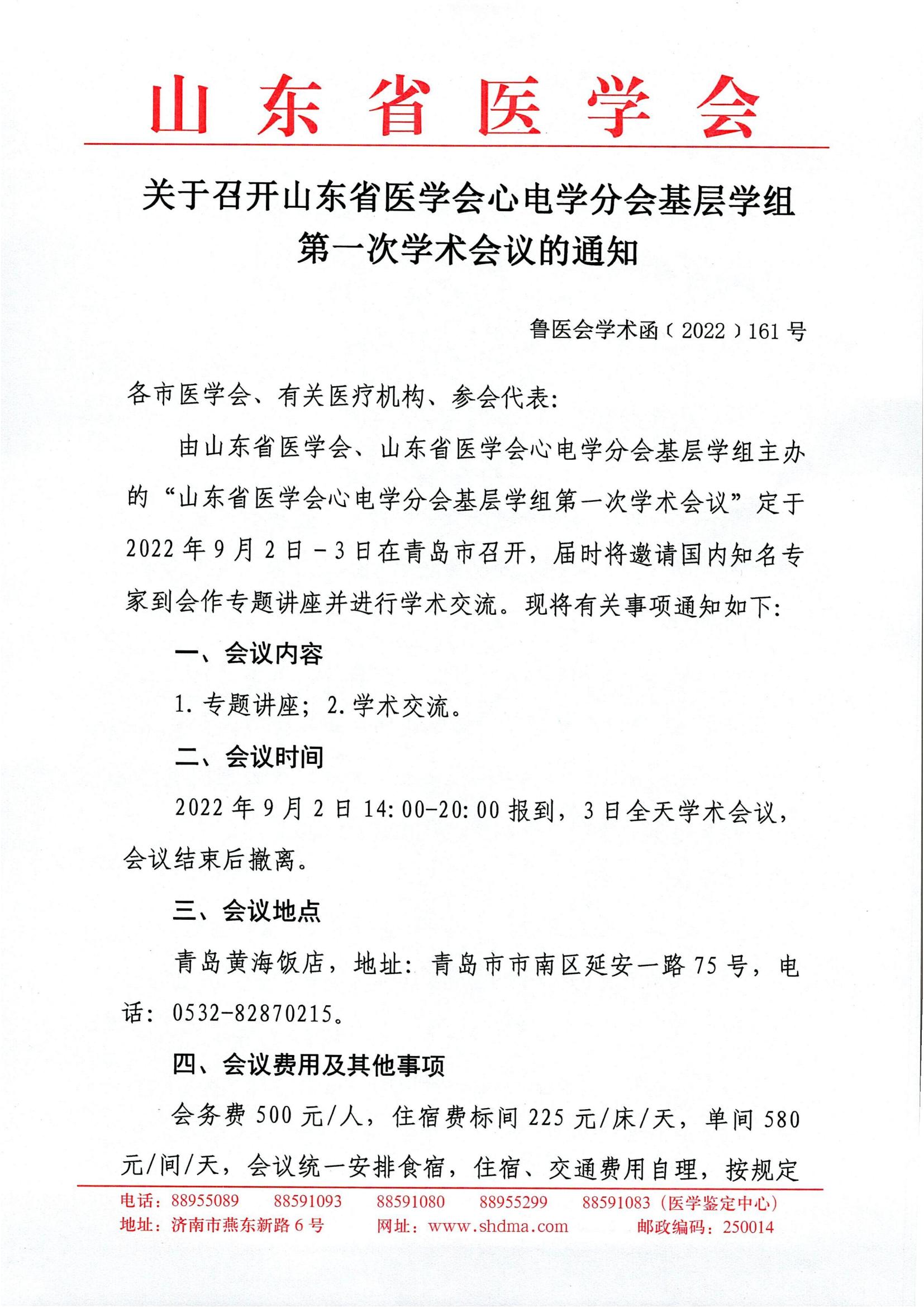 关于召开山东省医学会心电学分会基层学组第一次学术会议的通知