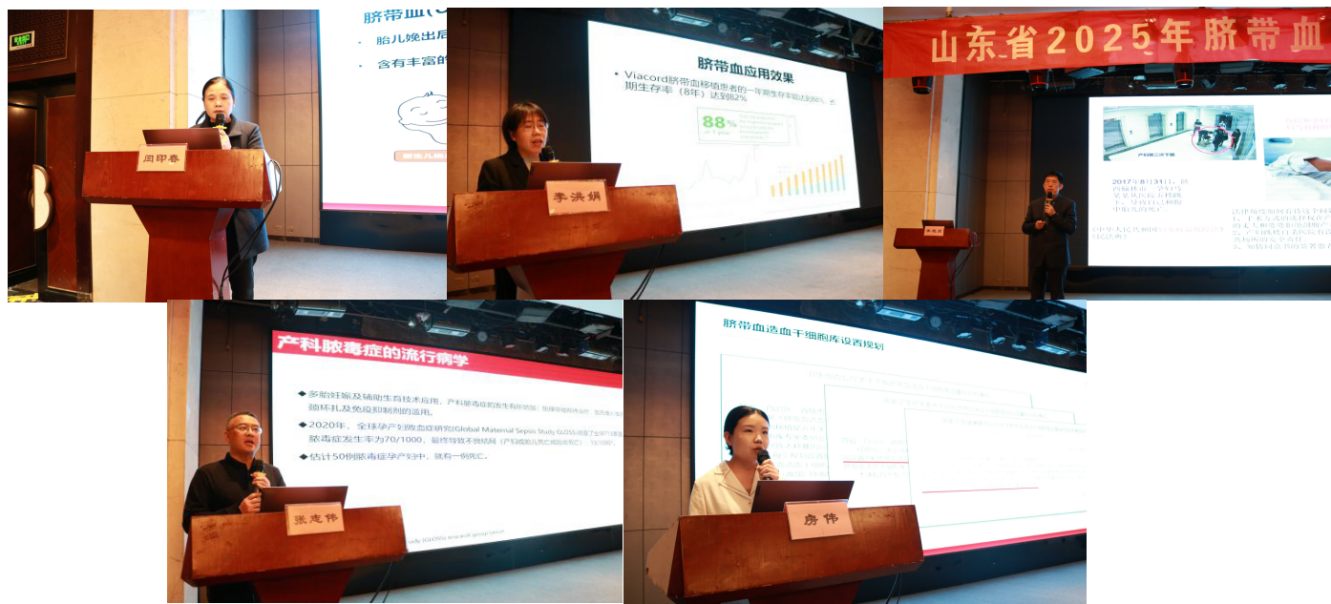 培训环节邀请菏泽市立医院产科主任闫印春,山东第一医科大学第一附属医院小儿血液科副主任李洪娟,山东省医学会医学鉴定分会主任委员、山东第一医科大学附属省立医院信访与法规事务处处长李冠贞,山东第一医科大学第一附属医院产科副主任张志伟,山东省脐血库医学中心研究员房伟,分别以《脐带血采集经验分享》《脐带血的临床应用》《医患纠纷及应对》《产科脓毒症的识别和管理》《脐带血相关法规和应用进展》为题作专题授课。