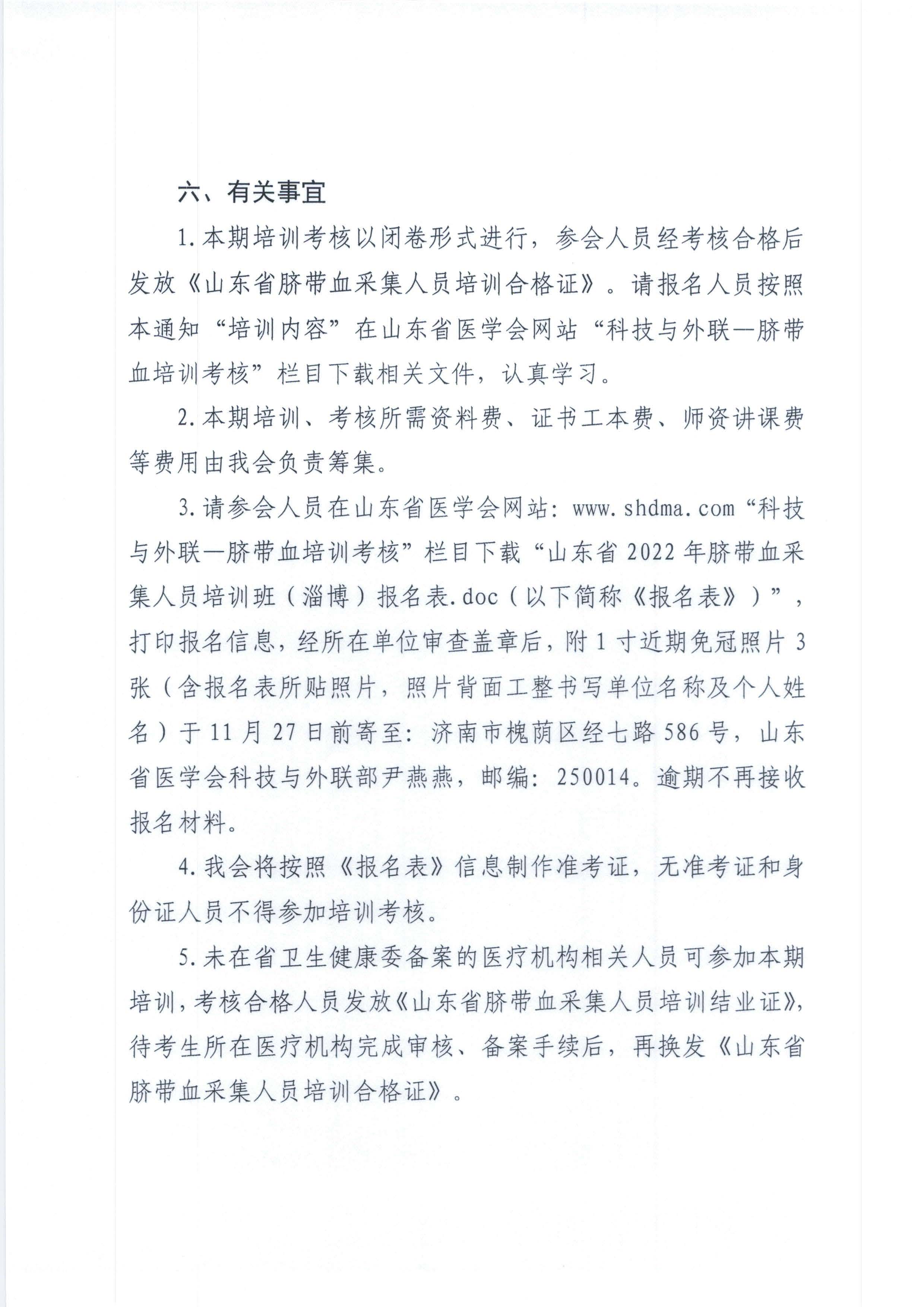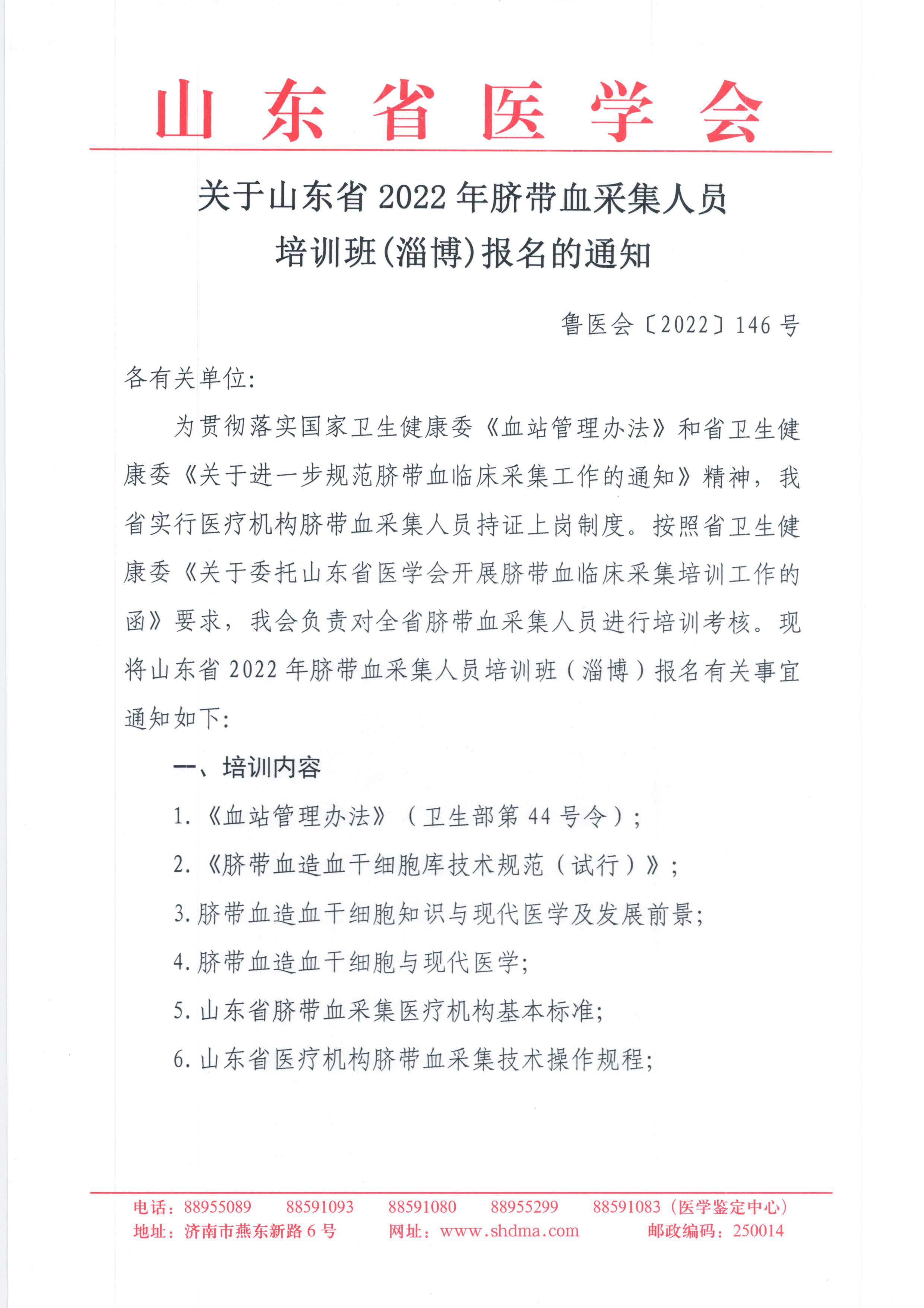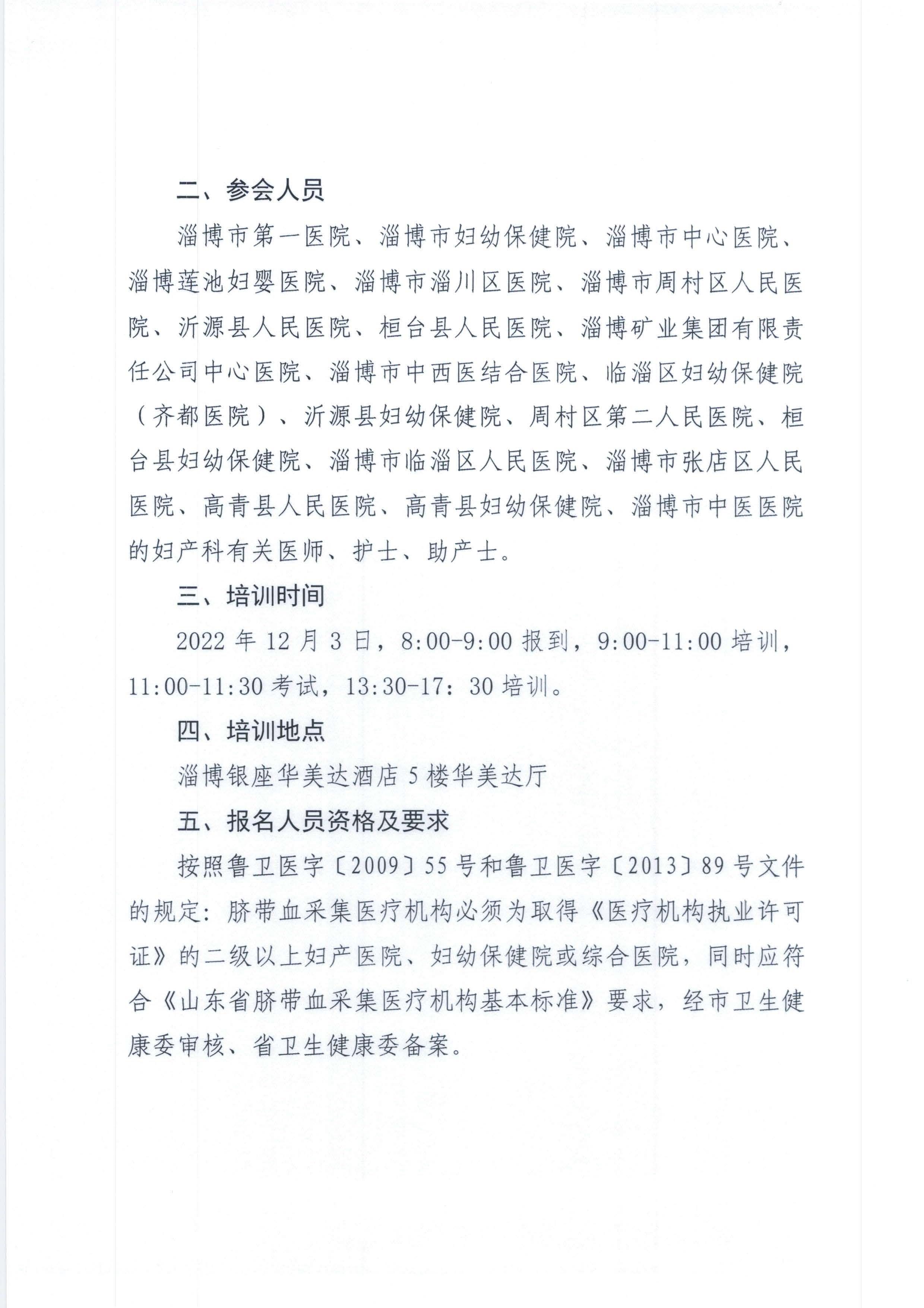 关于山东省2022年脐带血采集人员培训班(淄博)报名的通知