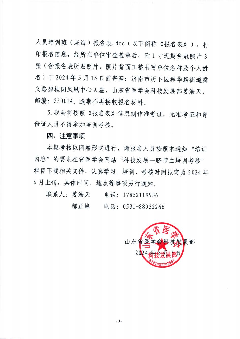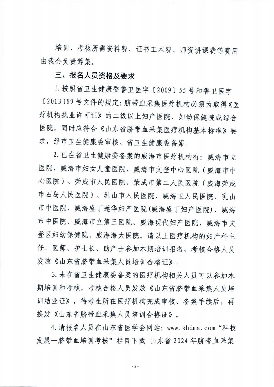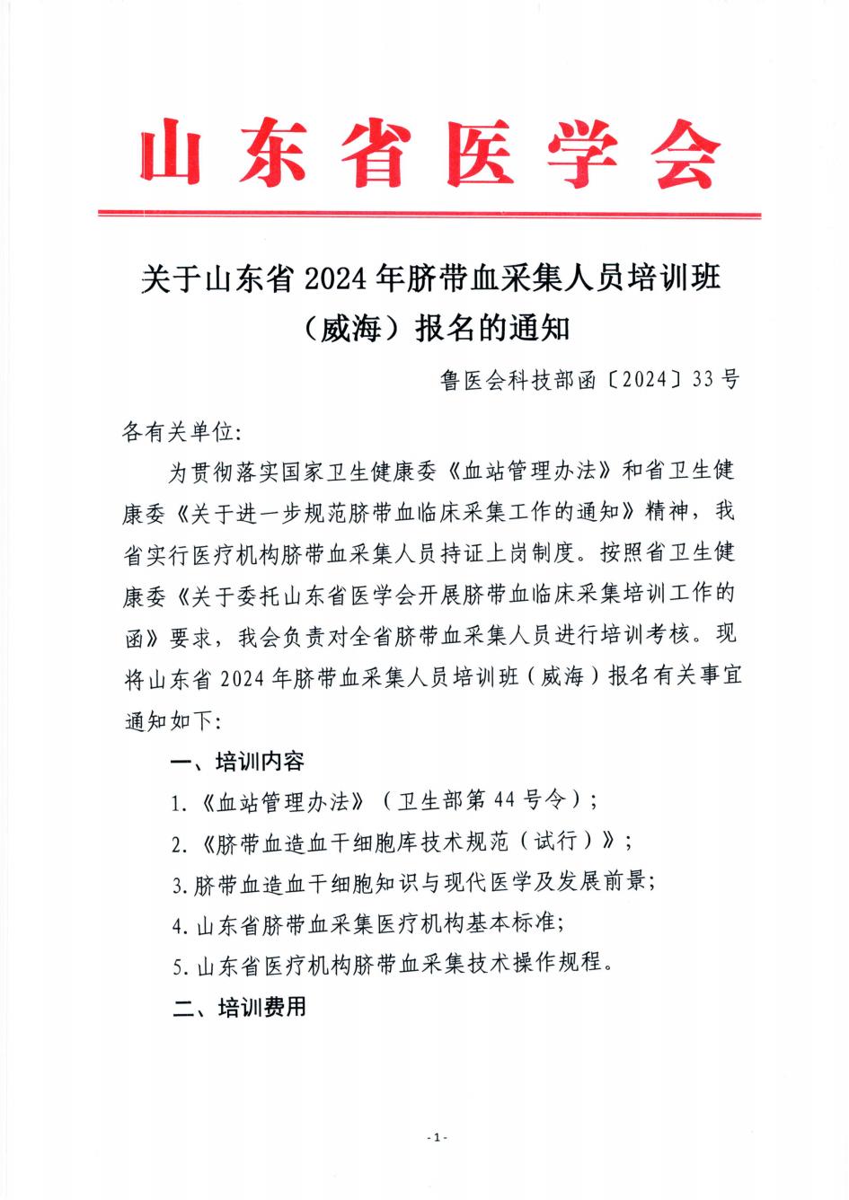 关于山东省2024年脐带血采集人员培训班(威海)报名的通知