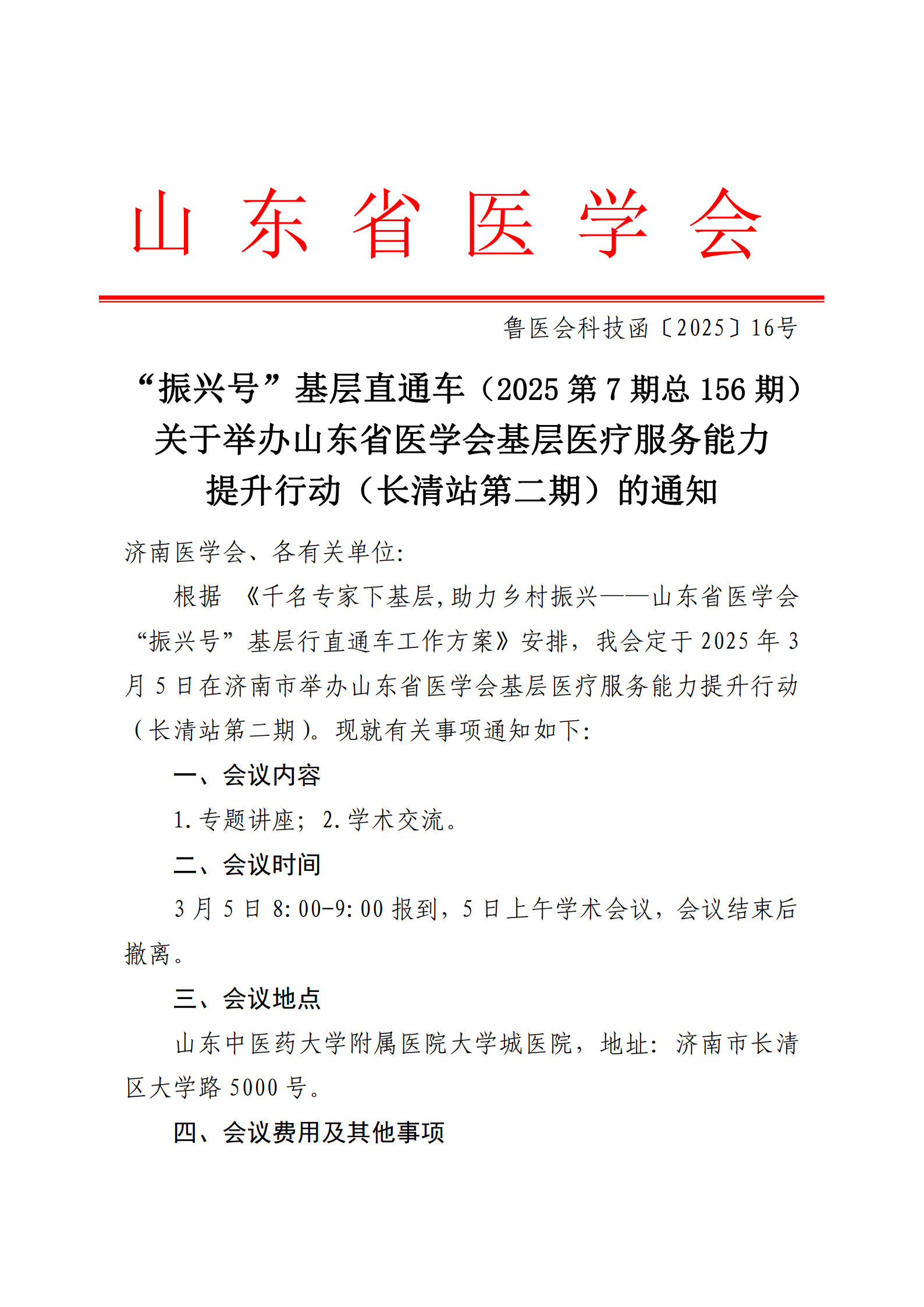 “振兴号”基层直通车(2025第7期总156期)关于举办山东省医学会基层医疗服务能力提升行动(长清站第二期)的通知