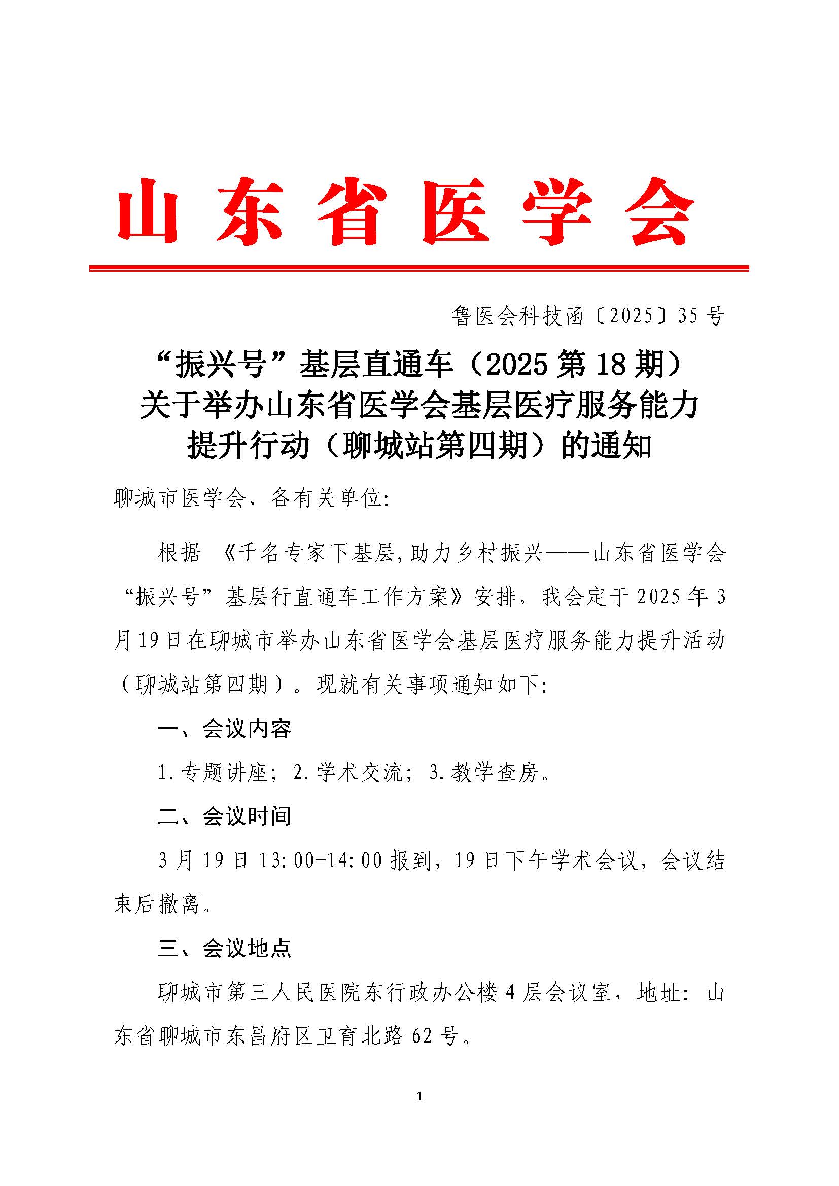 “振兴号”基层直通车(2025第18期)关于举办山东省医学会基层医疗服务能力提升行动(聊城站第四期)的通知
