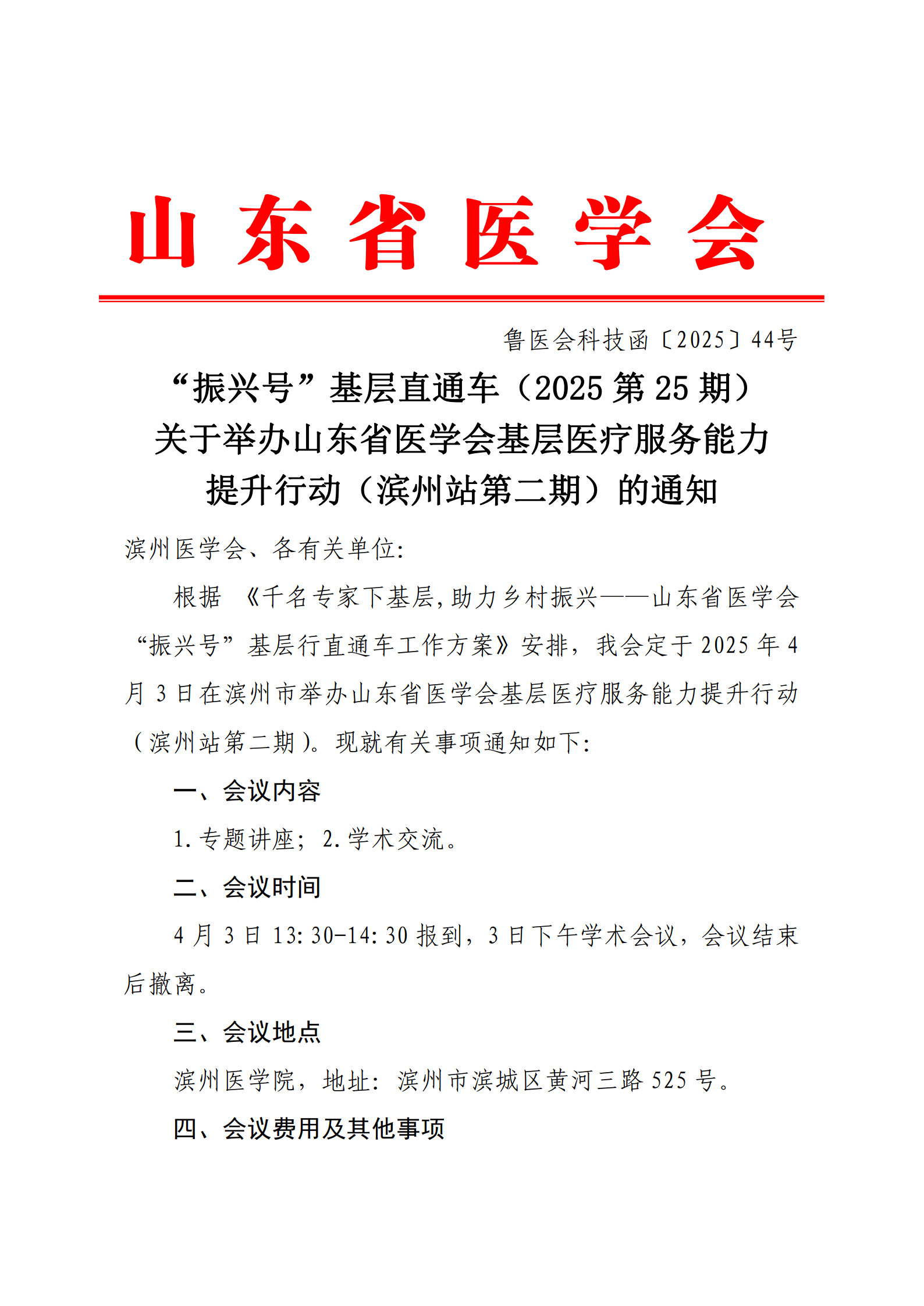 “振兴号”基层直通车(2025第25期)关于举办山东省医学会基层医疗服务能力提升行动(滨州站第二期)的通知
