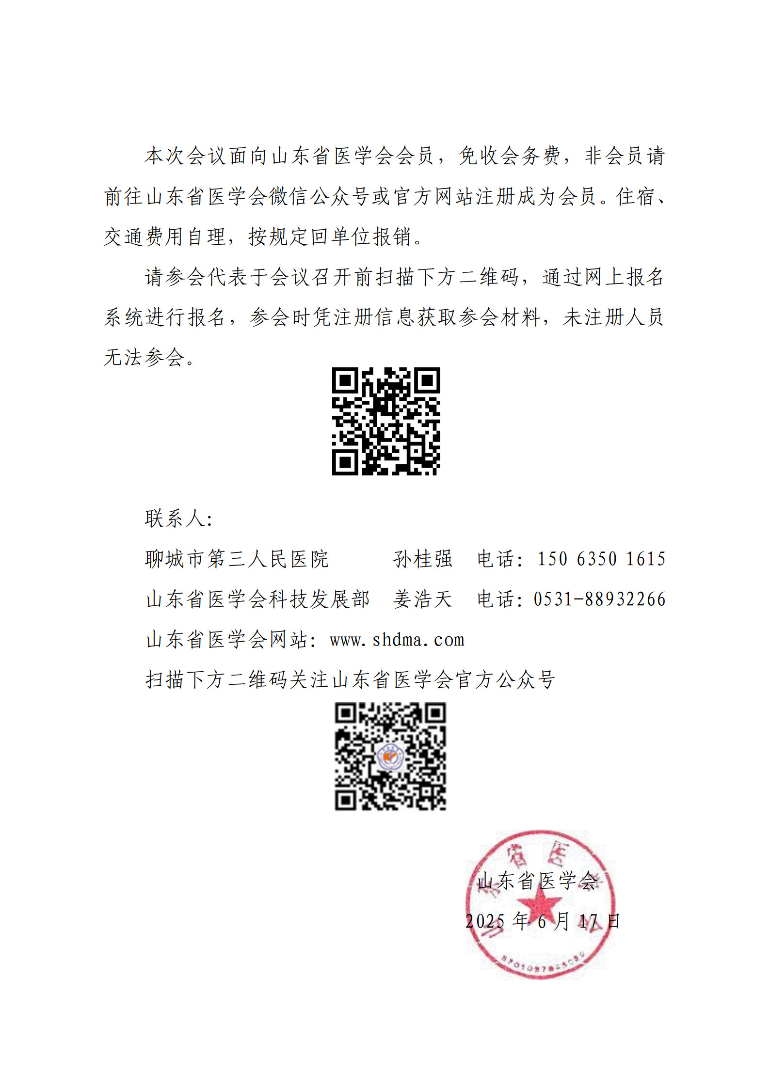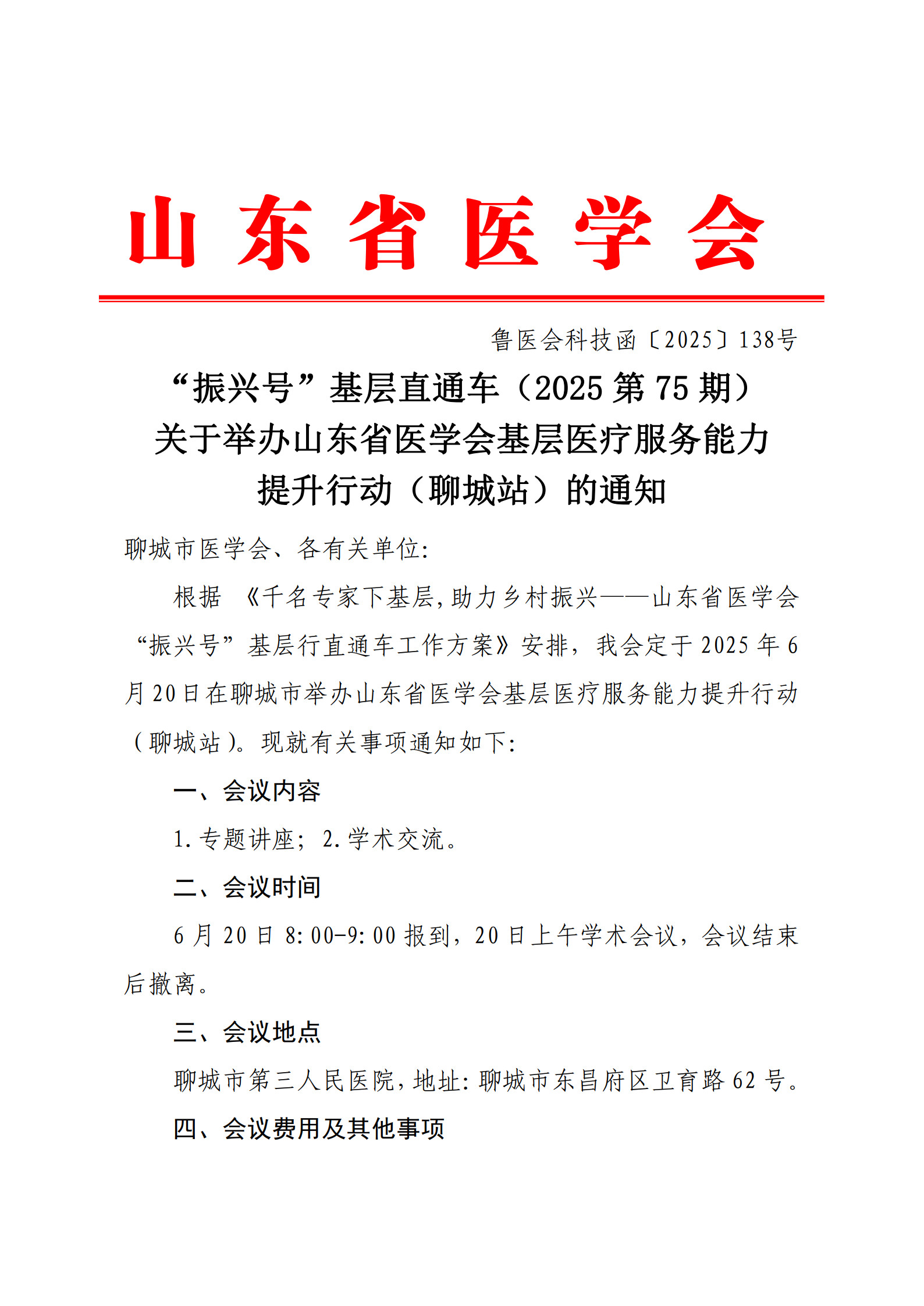 “振兴号”基层直通车(2025第75期)关于举办山东省医学会基层医疗服务能力提升行动(聊城站)的通知_