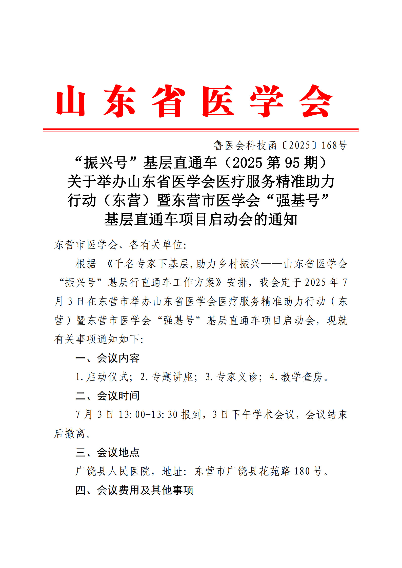 “振兴号”基层直通车(2025第95期)关于举办山东省医学会医疗服务精准助力行动(东营)暨东营市医学会“强基号”基层直通车项目启动会的通知