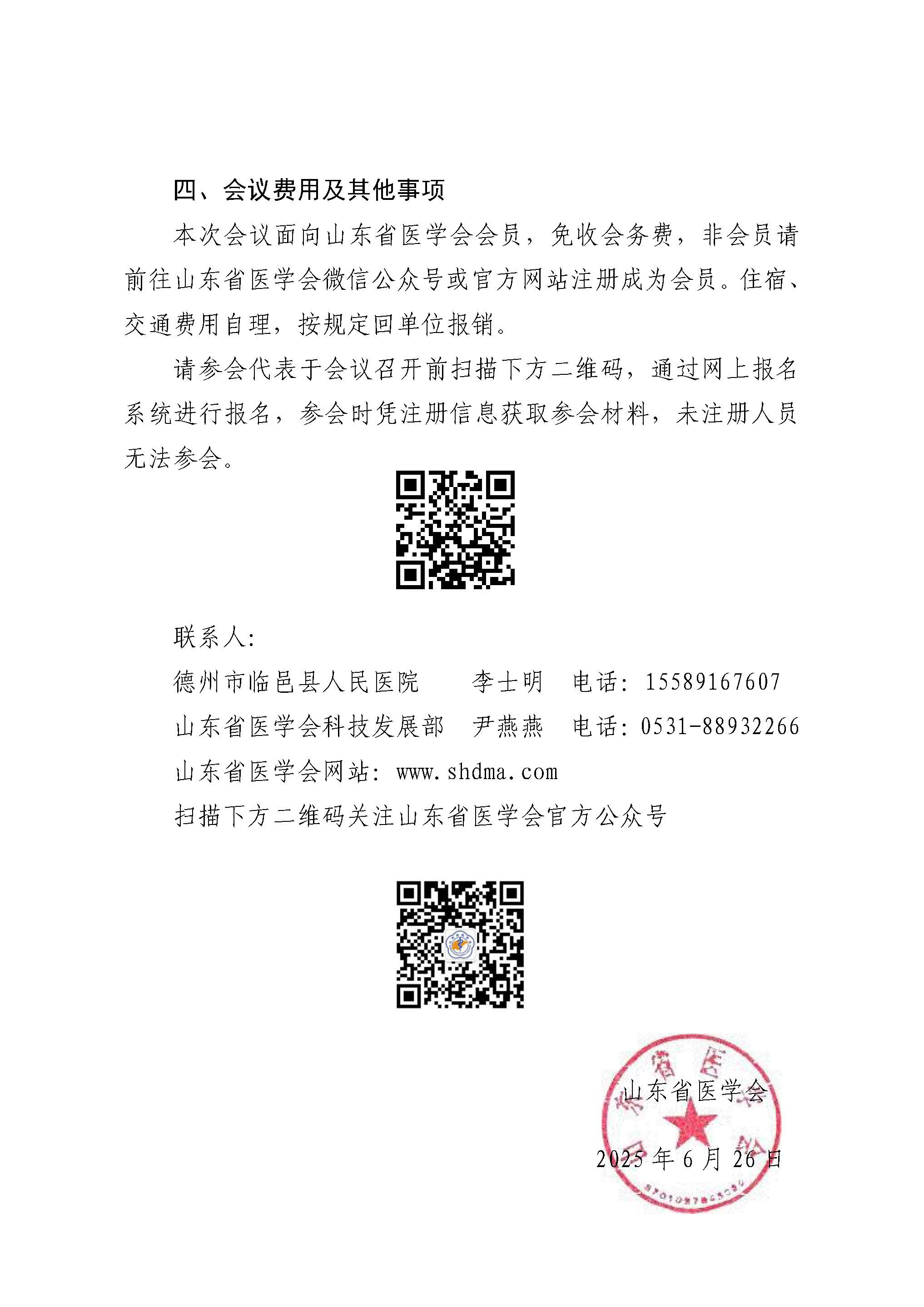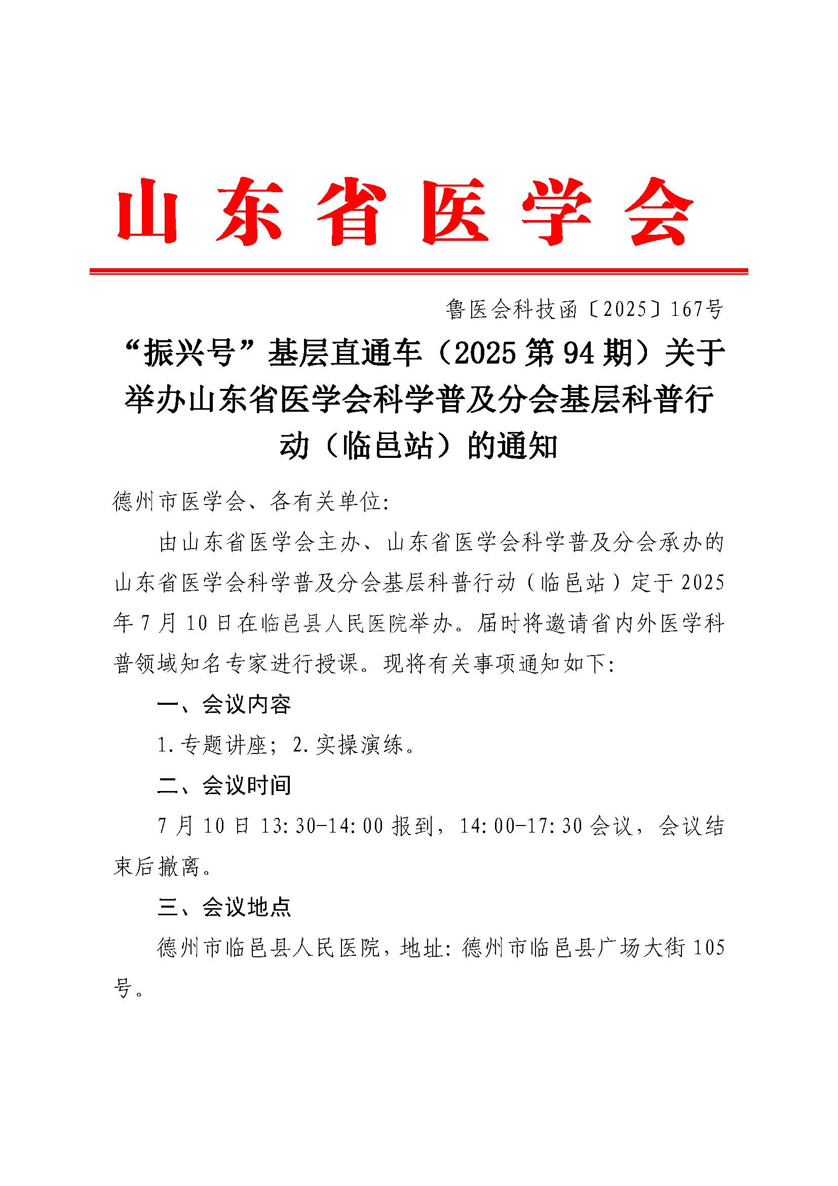 “振兴号”基层直通车(2025第94期)关于举办山东省医学会科学普及分会基层科普行动(临邑站)的通知