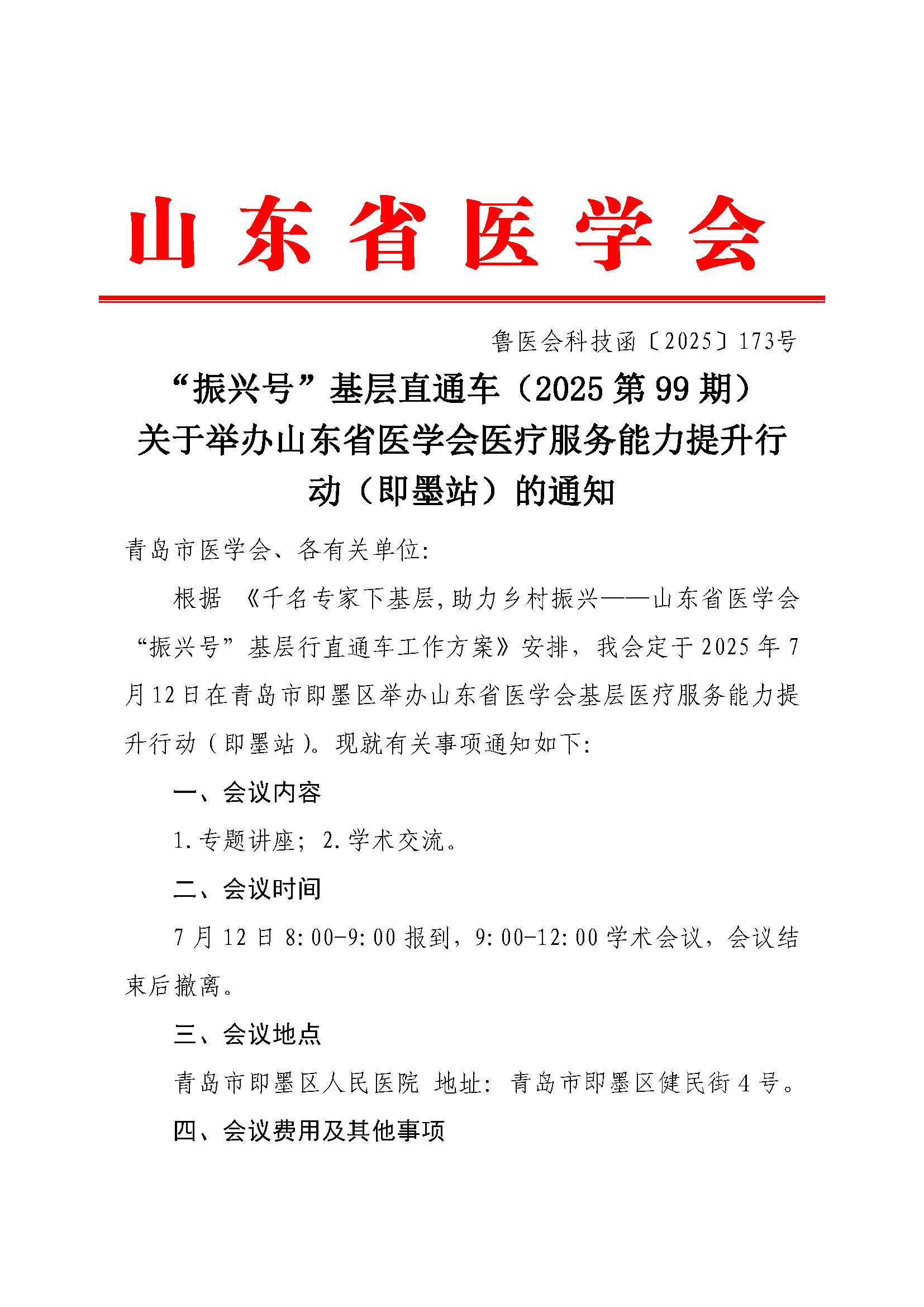 “振兴号”基层直通车(2025第99期)关于举办山东省医学会医疗服务能力提升行动(即墨站)的通知