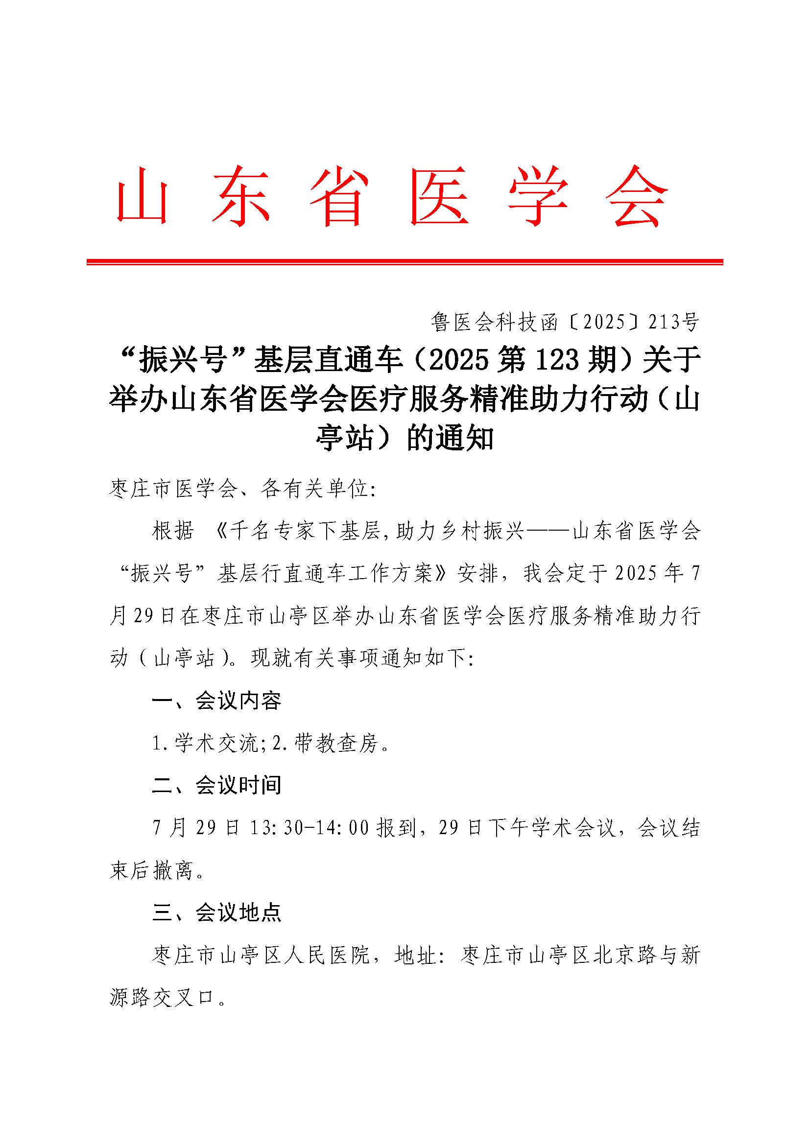 "振兴号"基层直通车(2025第123期)关于举办山东省医学会医疗服务能力提升行动(山亭站)的通知