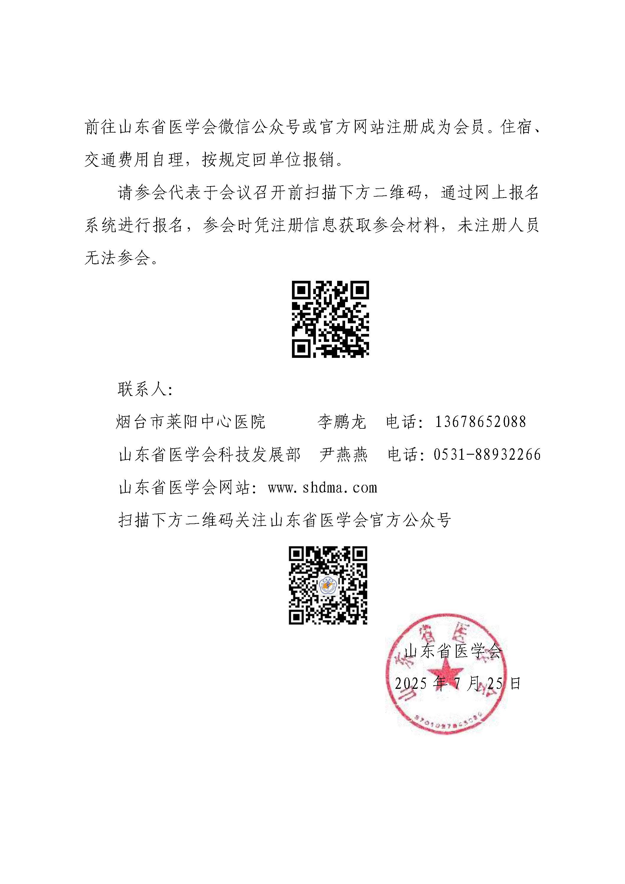 “振兴号”基层直通车(2025第125期)关于举办山东省医学会医疗服务精准助力行动(莱阳站)的通知