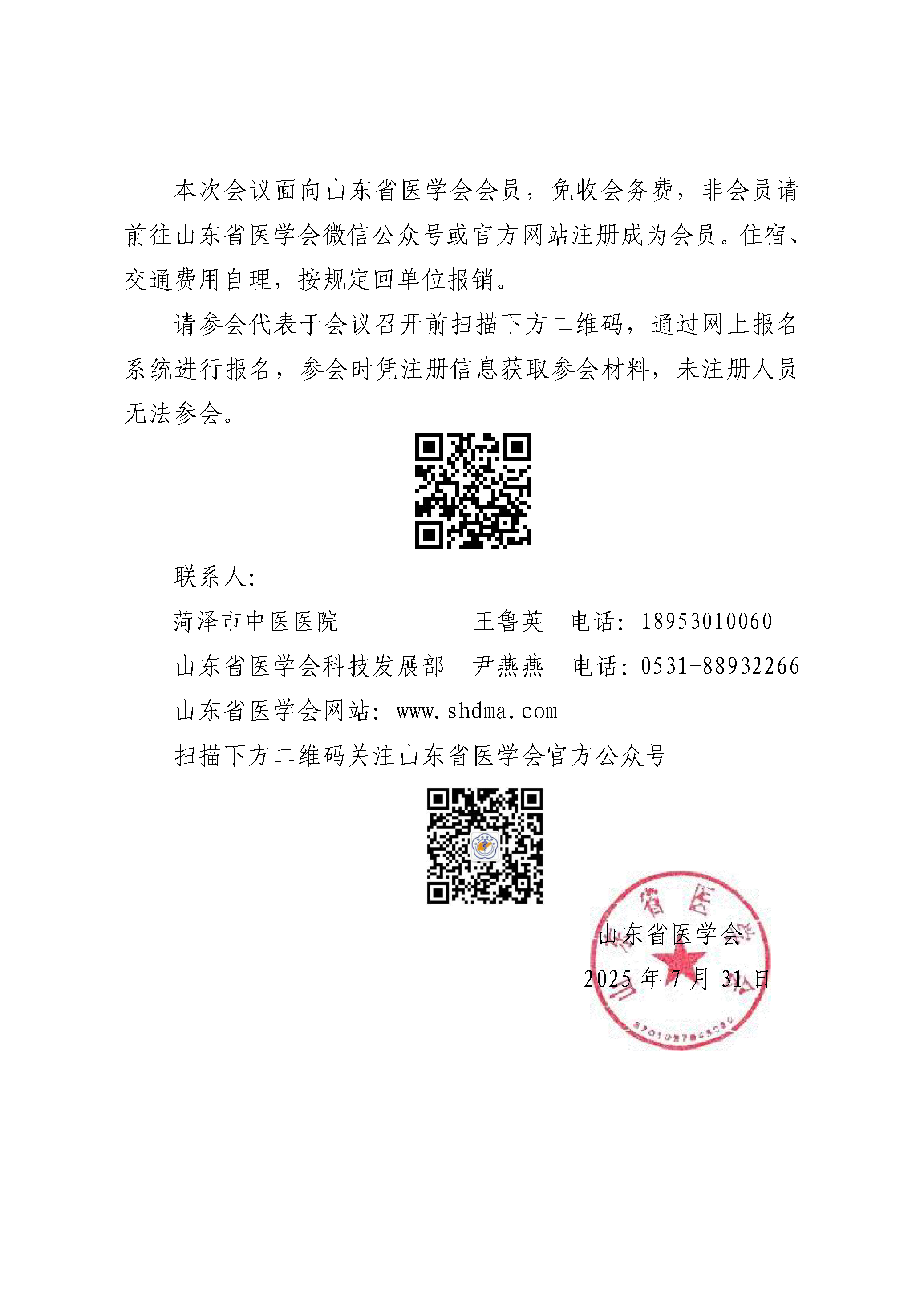 “振兴号”基层直通车(2025第129期)关于举办山东省医学会医疗服务精准助力行动(菏泽站)的通知