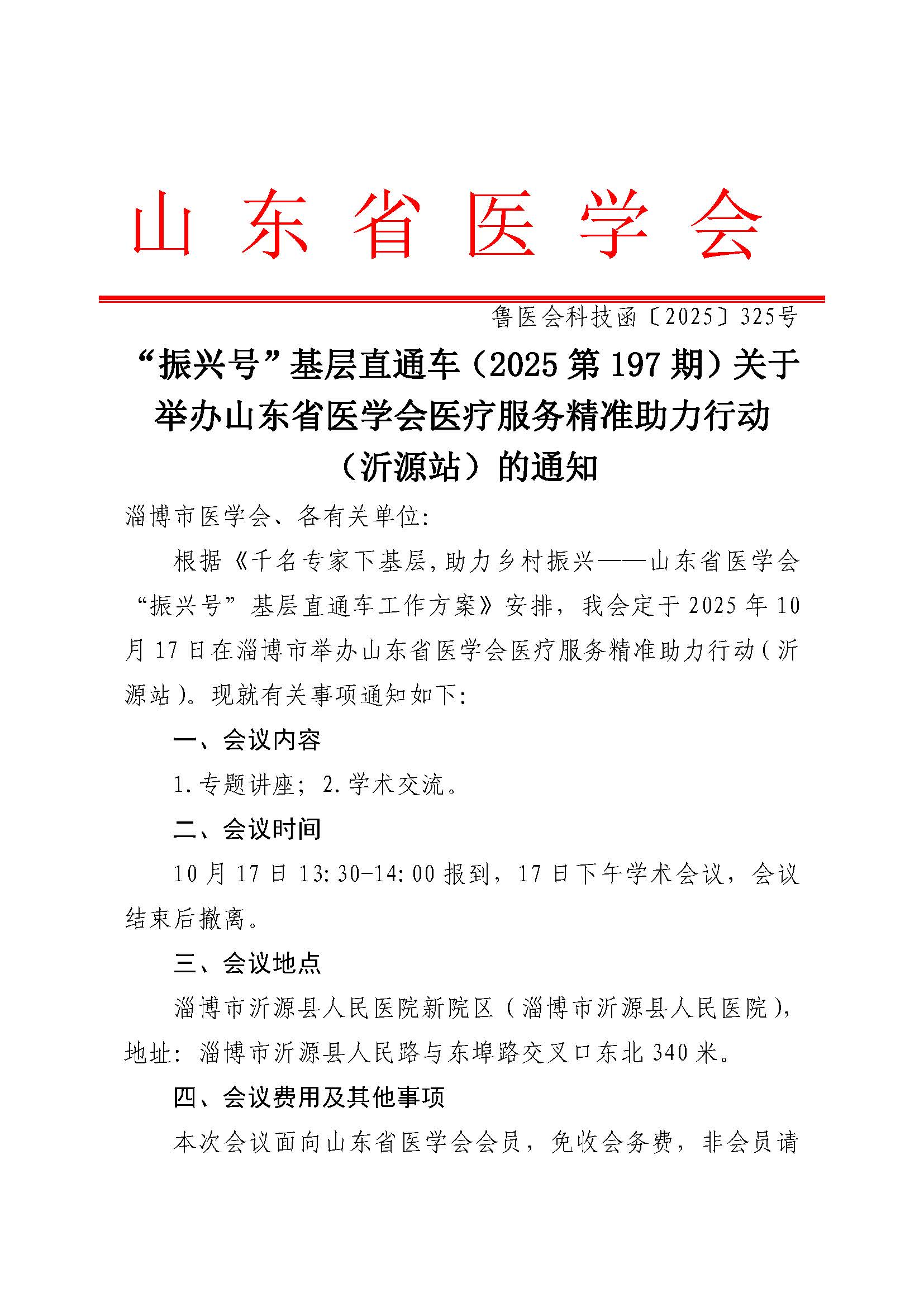 “振兴号”基层直通车(2025第197期)关于举办山东省医学会医疗服务精准助力行动(沂源站)的通知