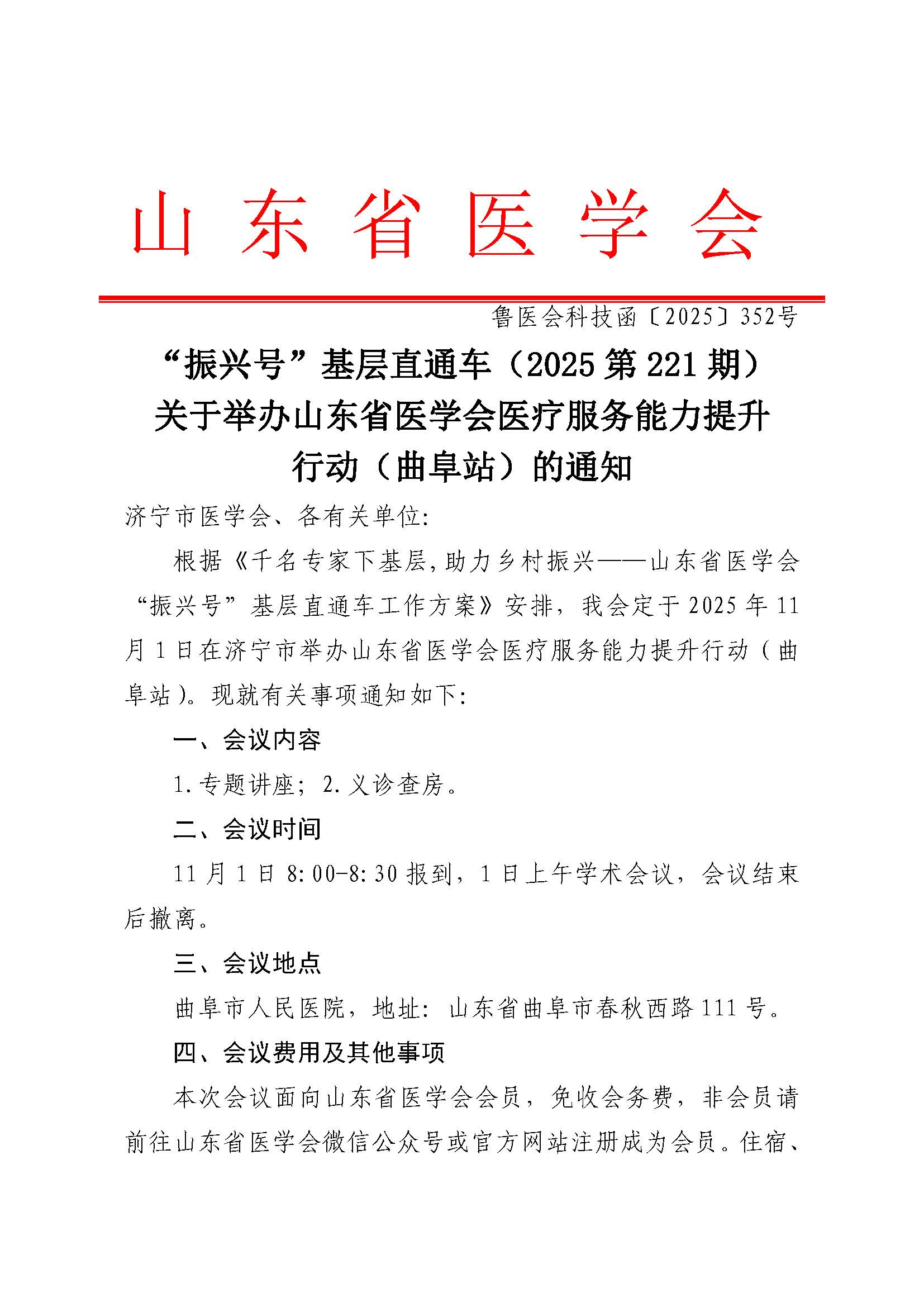 “振兴号”基层直通车(2025第221期)关于举办山东省医学会医疗服务能力提升行动(曲阜站)的通知