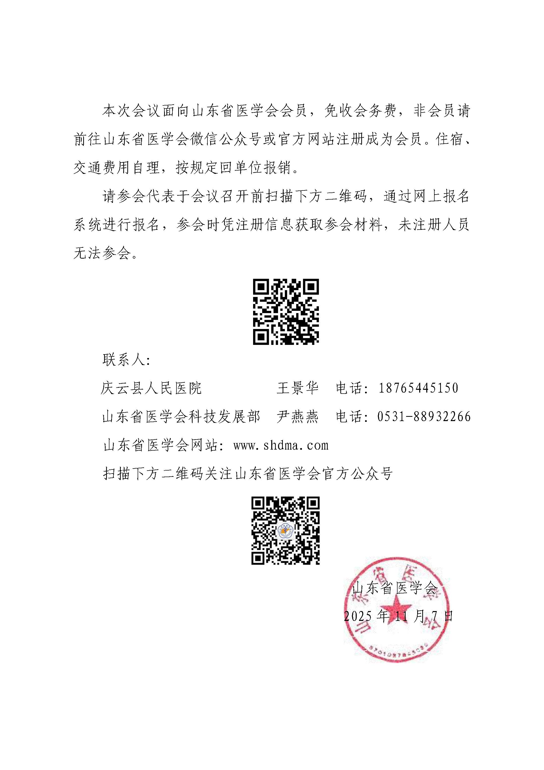 “振兴号”基层直通车(2025第238期)关于举办山东省医学会医疗服务精准助力行动(庆云站)的通知