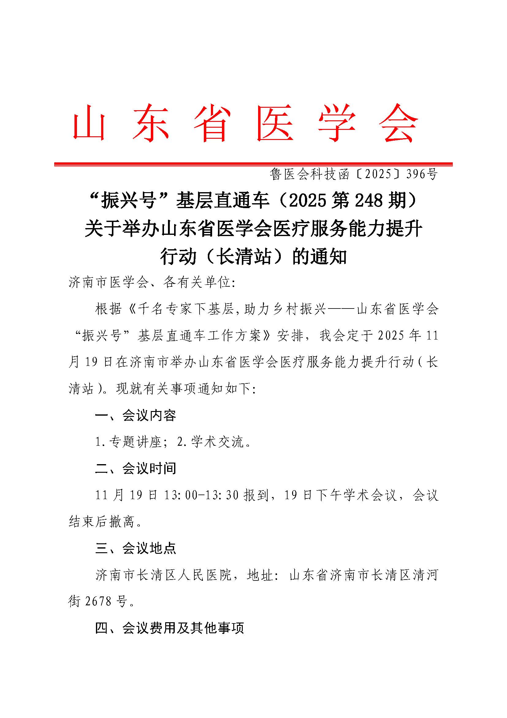 “振兴号”基层直通车(2025第248期)关于举办山东省医学会医疗服务能力提升行动(长清站)的通知
