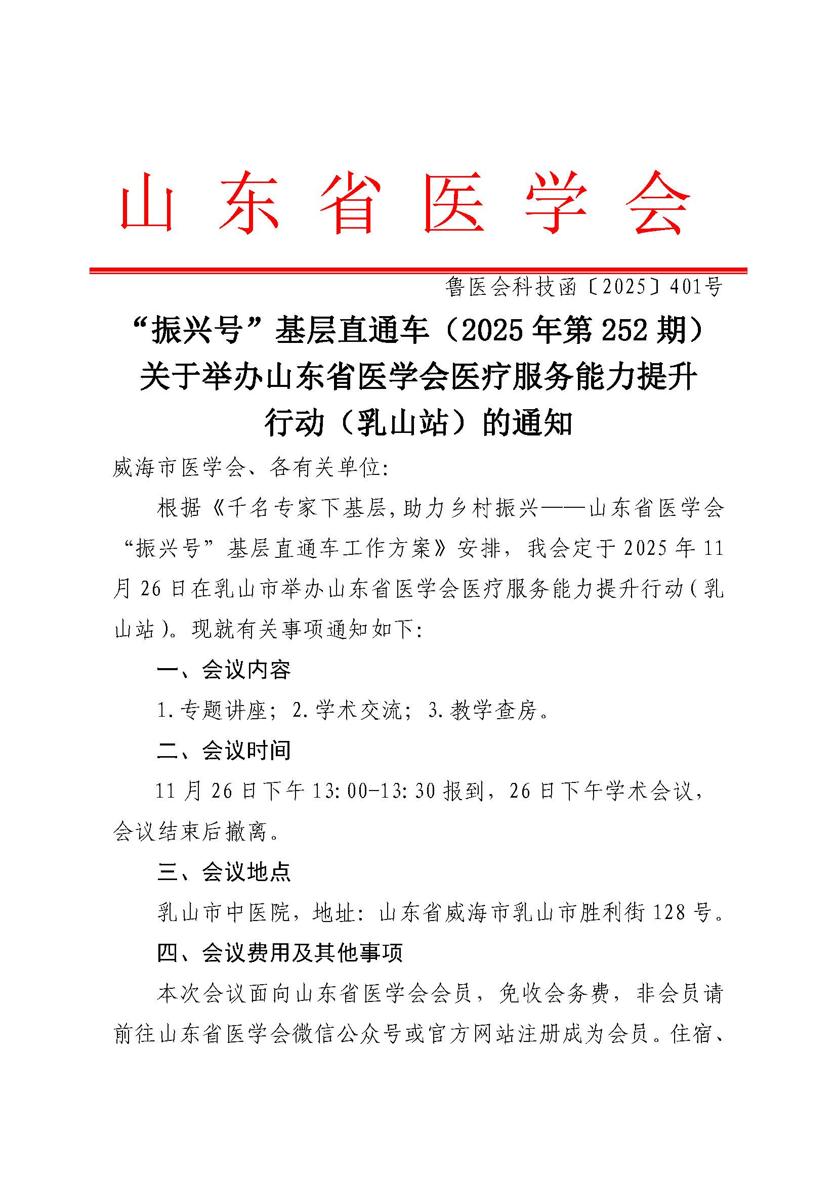 “振兴号”基层直通车(2025年第252期)关于举办山东省医学会医疗服务能力提升行动(乳山站)的通知