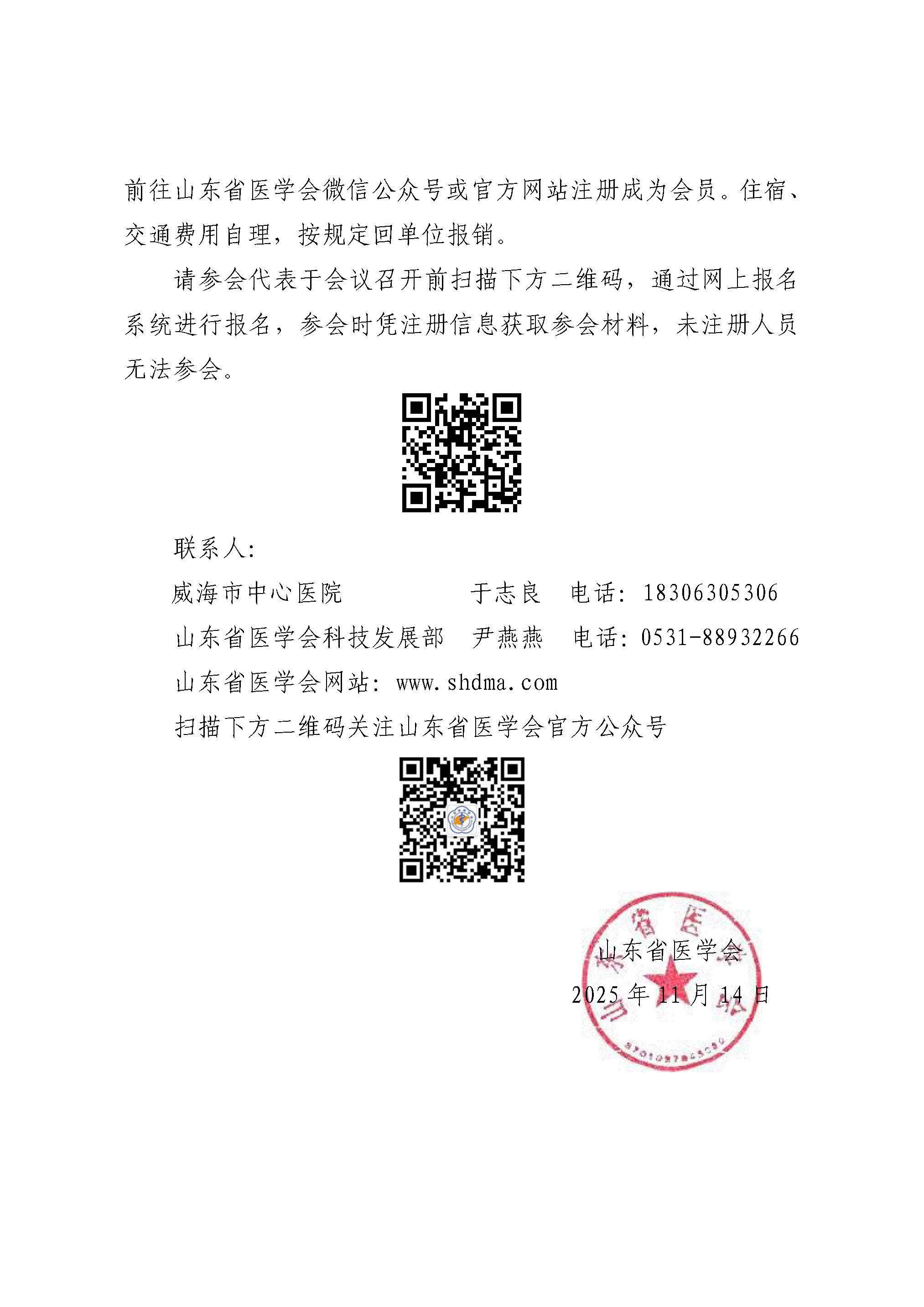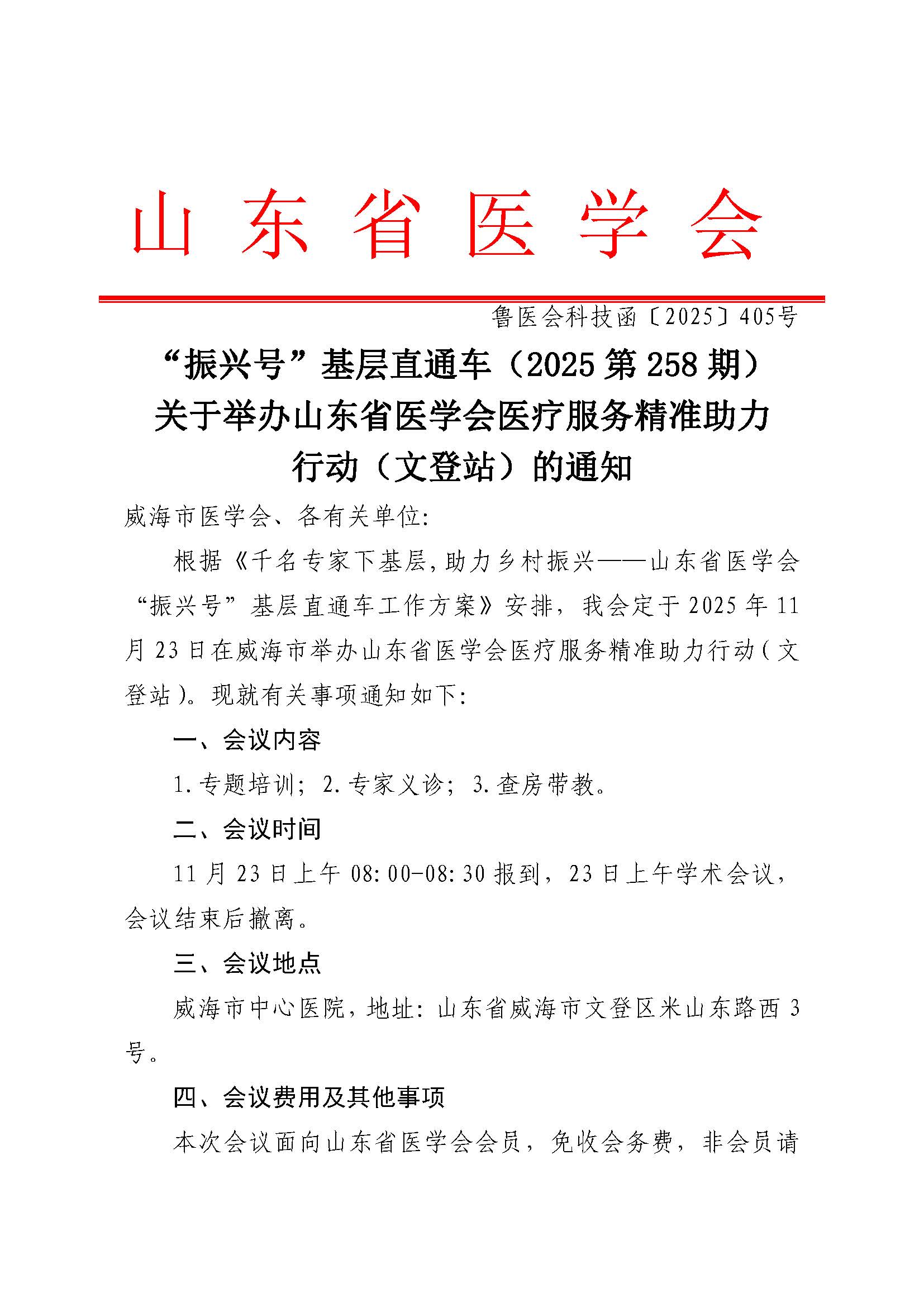 “振兴号”基层直通车(2025第258期)关于举办山东省医学会医疗服务精准助力行动(文登站)的通知