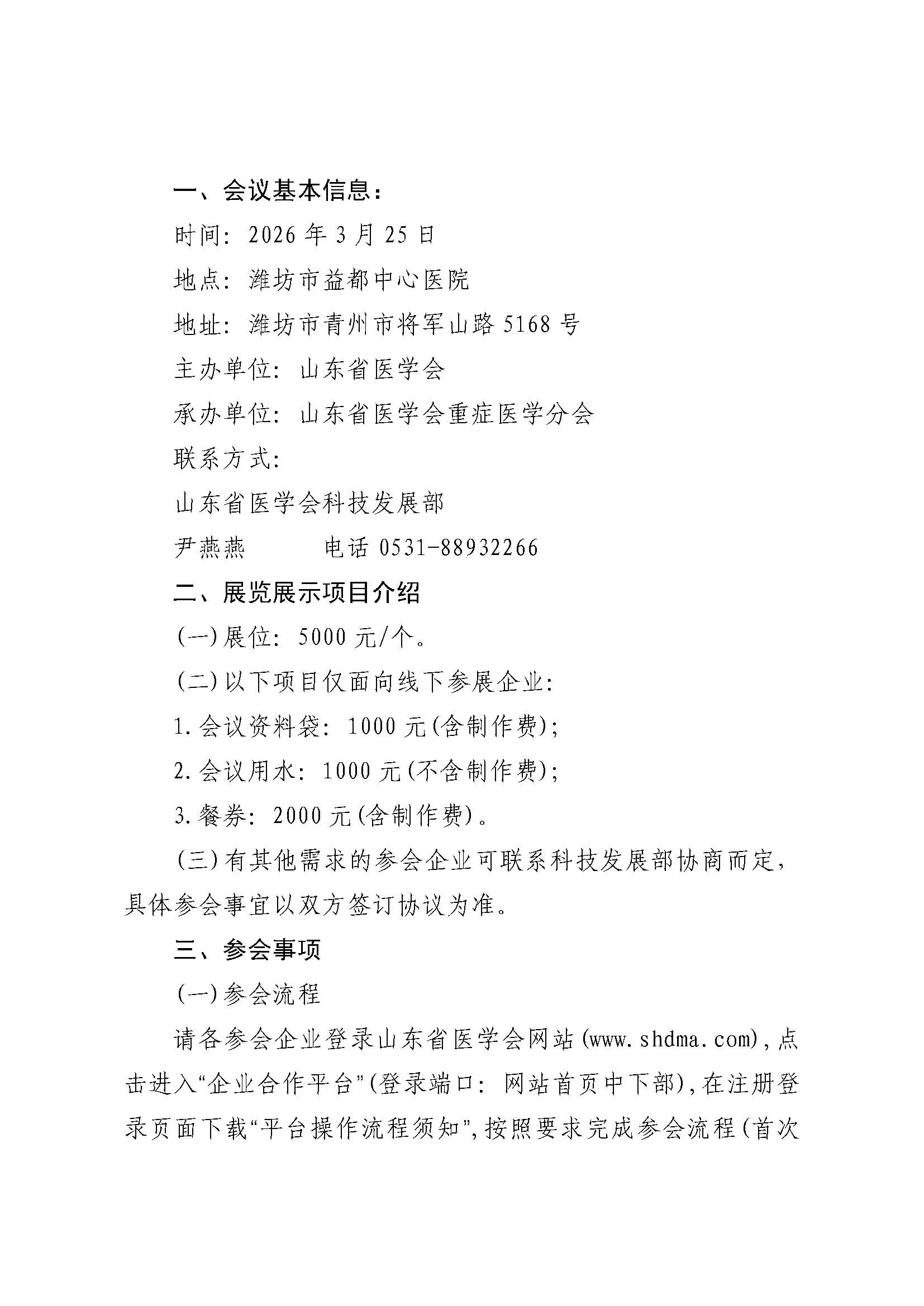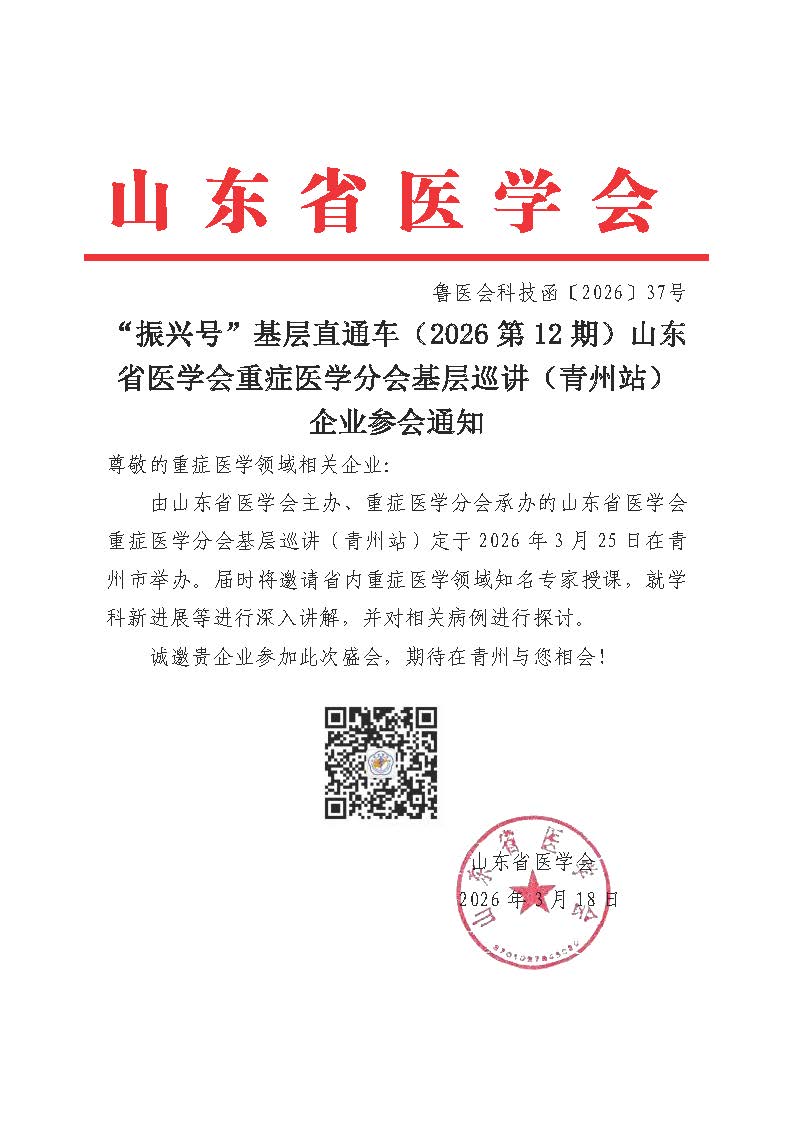 “振兴号”基层直通车(2026第12期)山东省医学会重症医学分会基层巡讲(青州站)企业参会通知