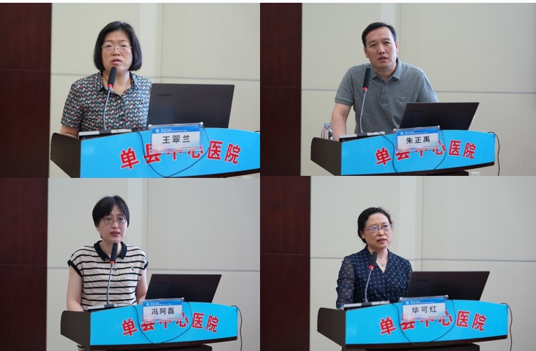 开幕式结束后的专题培训环节,山东省医学会神经内科学分会顾问、山东大学齐鲁医院脑血管病区主任王翠兰,山东省医学会脑血管病分会副主任委员、山东大学第二医院神经内科主任朱正禹,山东第一医科大学附属省立医院肿瘤放疗科副主任医师冯阿磊,山东省医学会血液病学分会副主任委员、山东第一医科大学第一附属医院血液科主任医师毕可红4名省级专家分别就“优化溶取栓策略,提升AIS再灌注治疗医疗质量”、“心源性脑卒中的诊治”、“HR+乳腺癌治疗全程管理,实现患者净获益”、 “2023年ASH免疫性血小板减少症诊疗最新研究进展解读”等内容进行了讲解。专家们深入浅出地阐述了各自领域的最新研究成果和临床实践,不仅赢得了在场人员的热烈掌声和高度赞誉,更为基层医疗工作者带来了宝贵的前沿医学知识和丰富的实践经验。来自菏泽各县区及单县地区100余名相关专业基层医务人员参加专题培训。